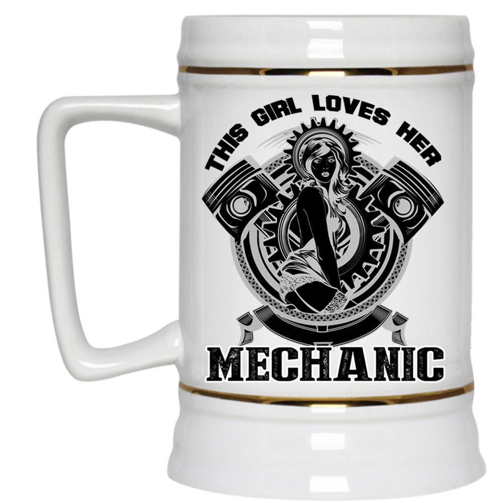 Cool Mechanic's Wife Beer Stein 22oz, This Girl Loves Her Mechanic Beer Mug