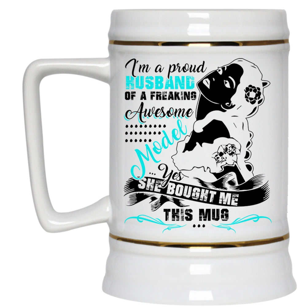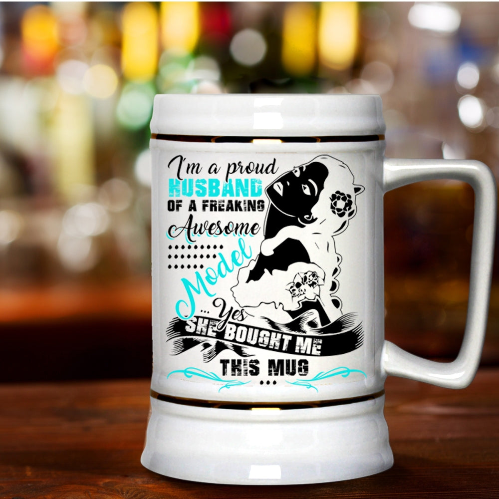 Cool Model's Husband Beer Stein 22oz, I'm A Proud Husband Of A Model Beer Mug