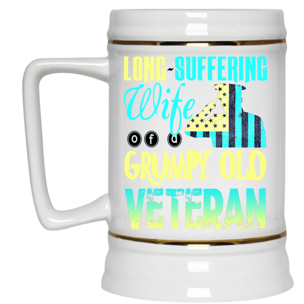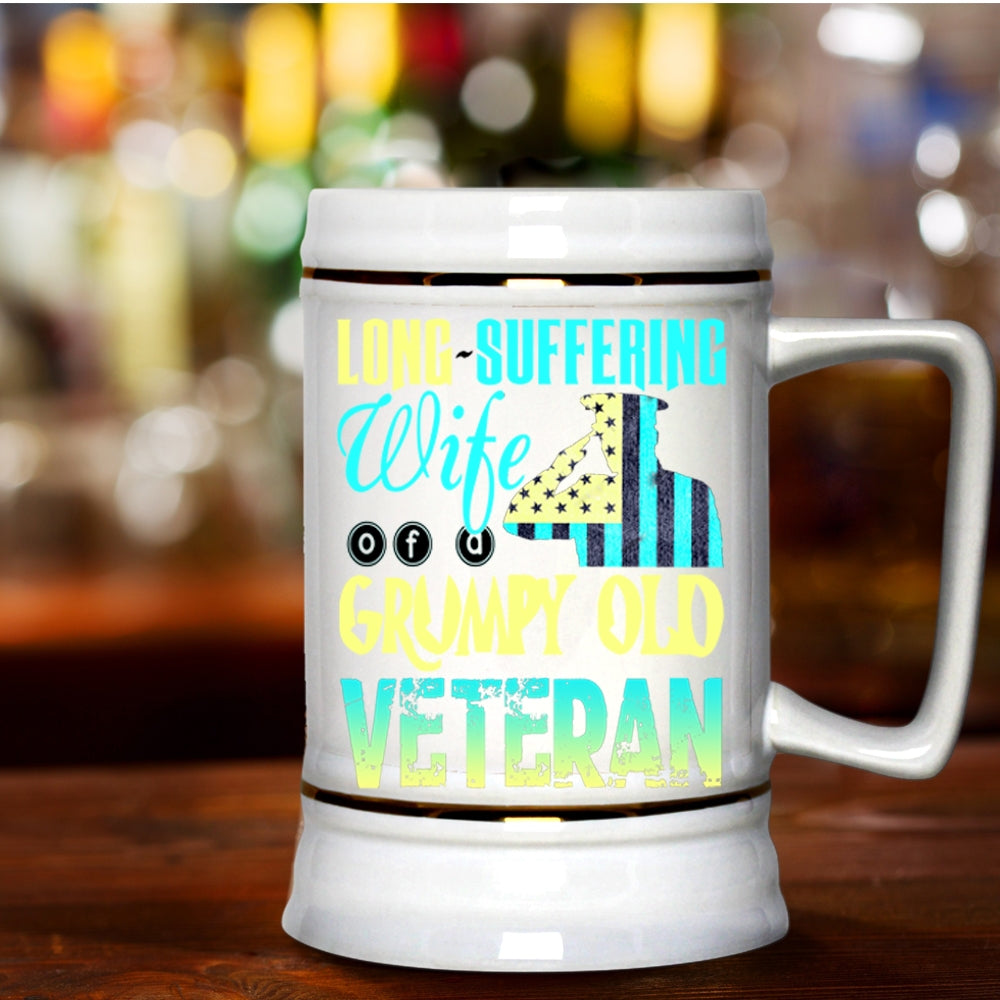Cool Mom Beer Stein 22oz, Long Suffering Wife Of A Grumpy Old Veteran Beer Mug