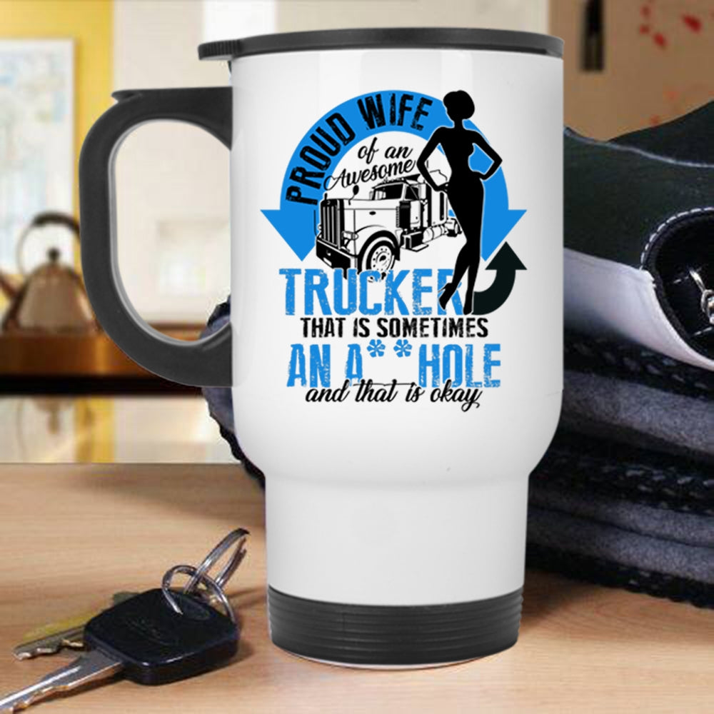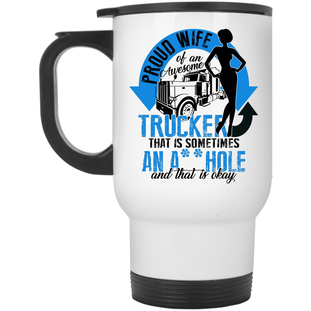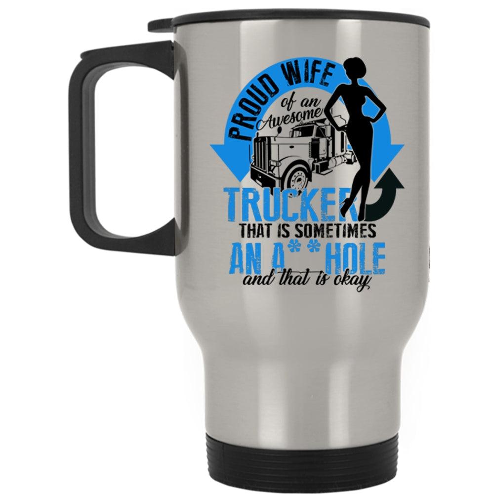 Cool Trucker's Wifre Travel Mug, Proud Wife Of An Awesome Trucker Mug