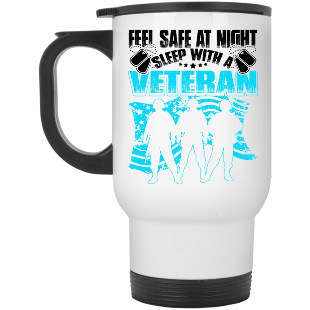 Cool Veteran's Wife Travel Mug, Feel Safe At Night Sleep With A Veteran Mug