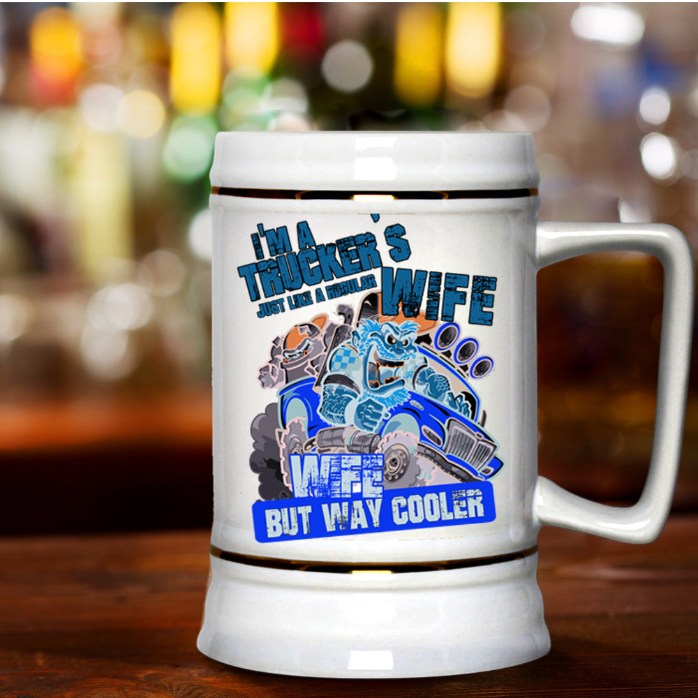 Cool Wife Beer Stein 22oz, I'm A Trucker's Wife Beer Mug