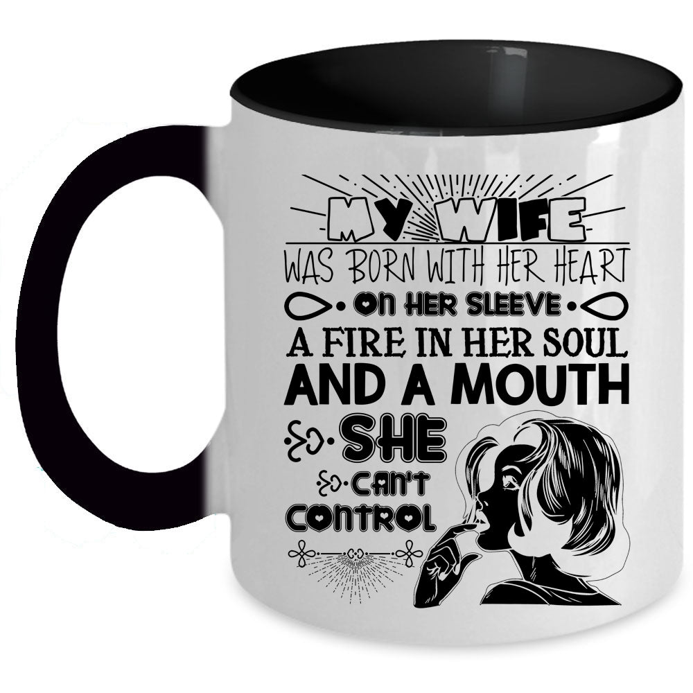 Cool Wife Coffee Mug, My Wife Was Born With Her Heart On Her Sleeve Accent Mug