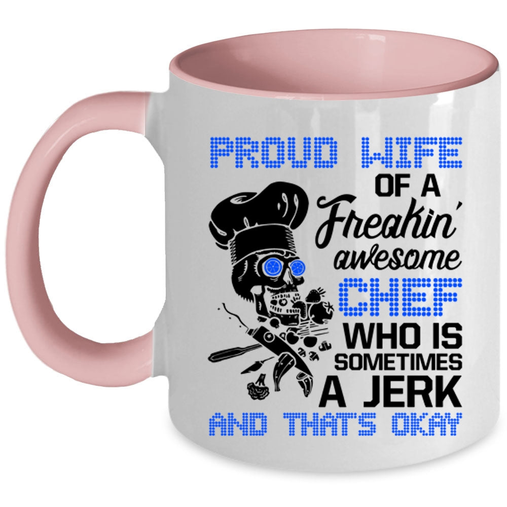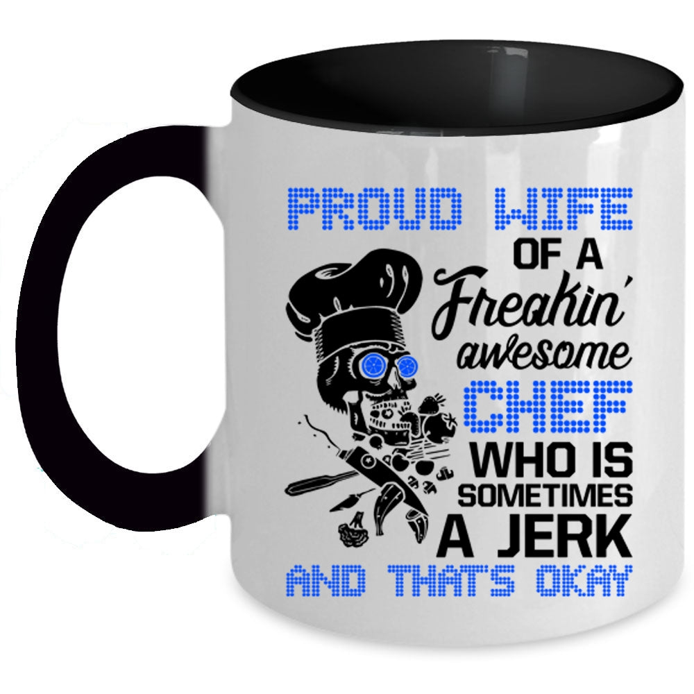 Cool Wife Coffee Mug, Proud Wife Of A Freaking Awesome Chef Accent Mug
