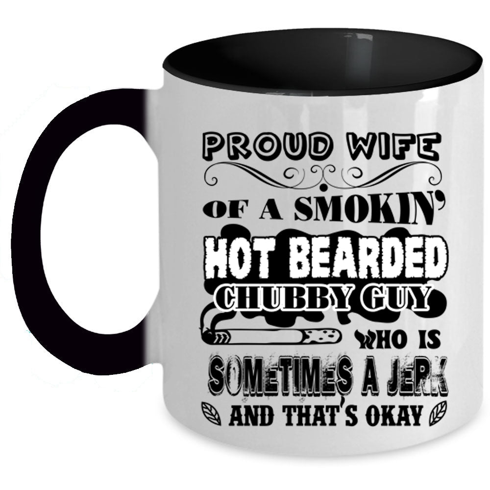 Cool Wife Coffee Mug, Proud Wife Of A Hot Bearded Chubby Guy Accent Mug