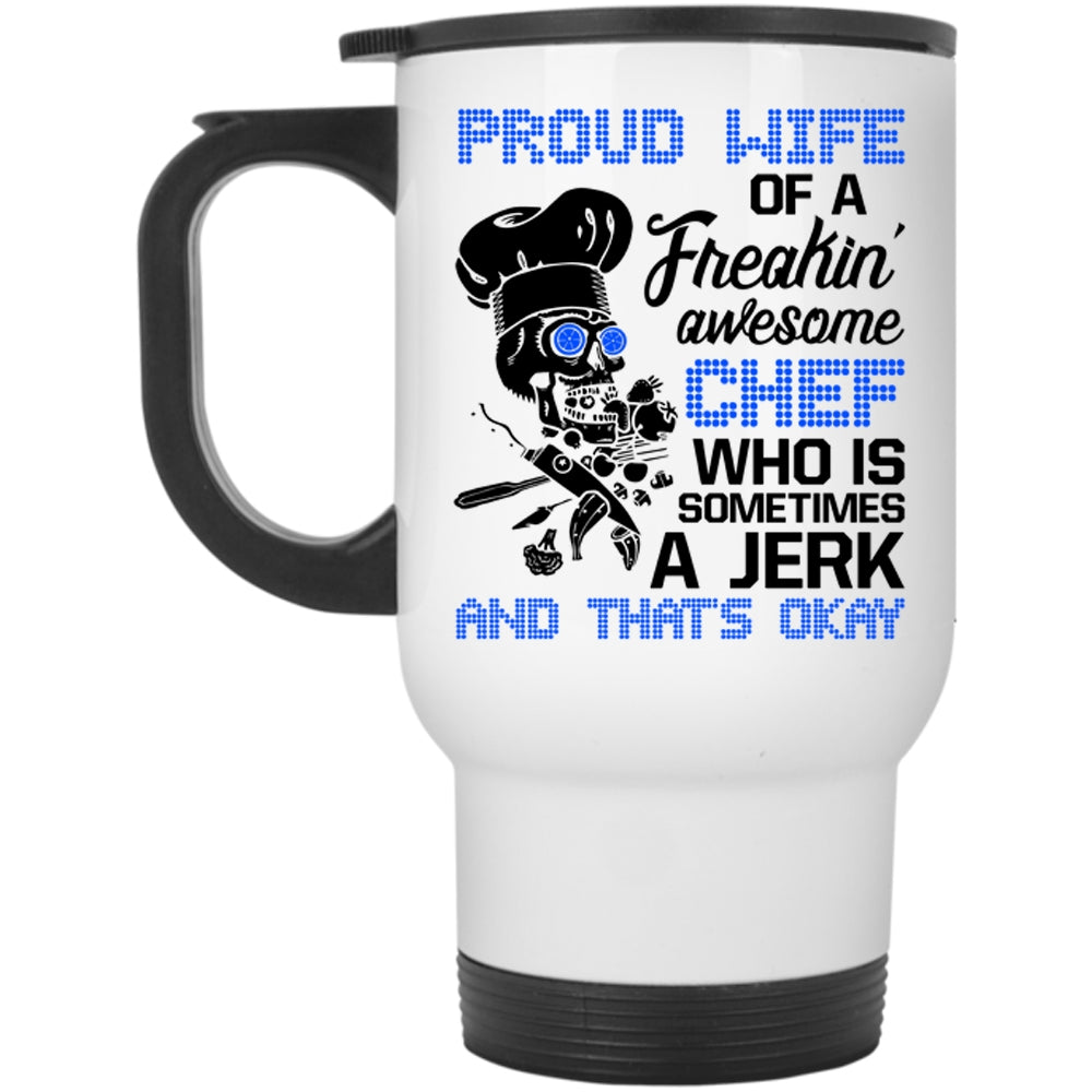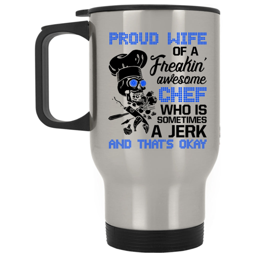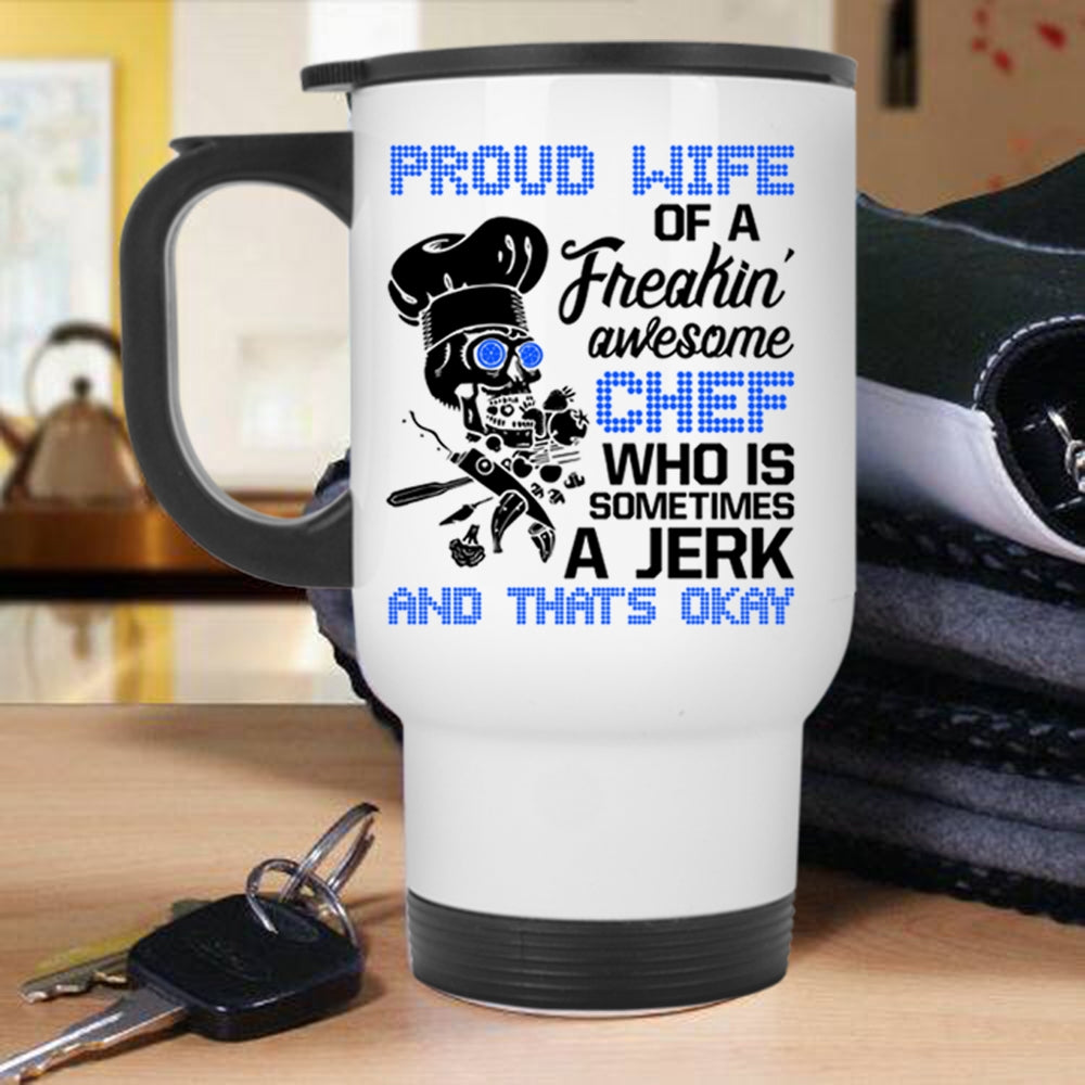 Cool Wife Travel Mug, Proud Wife Of A Freaking Awesome Chef Mug