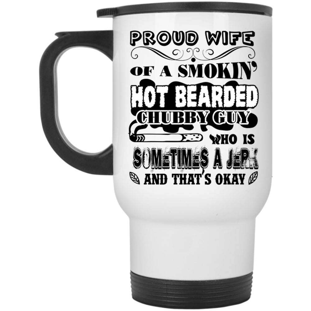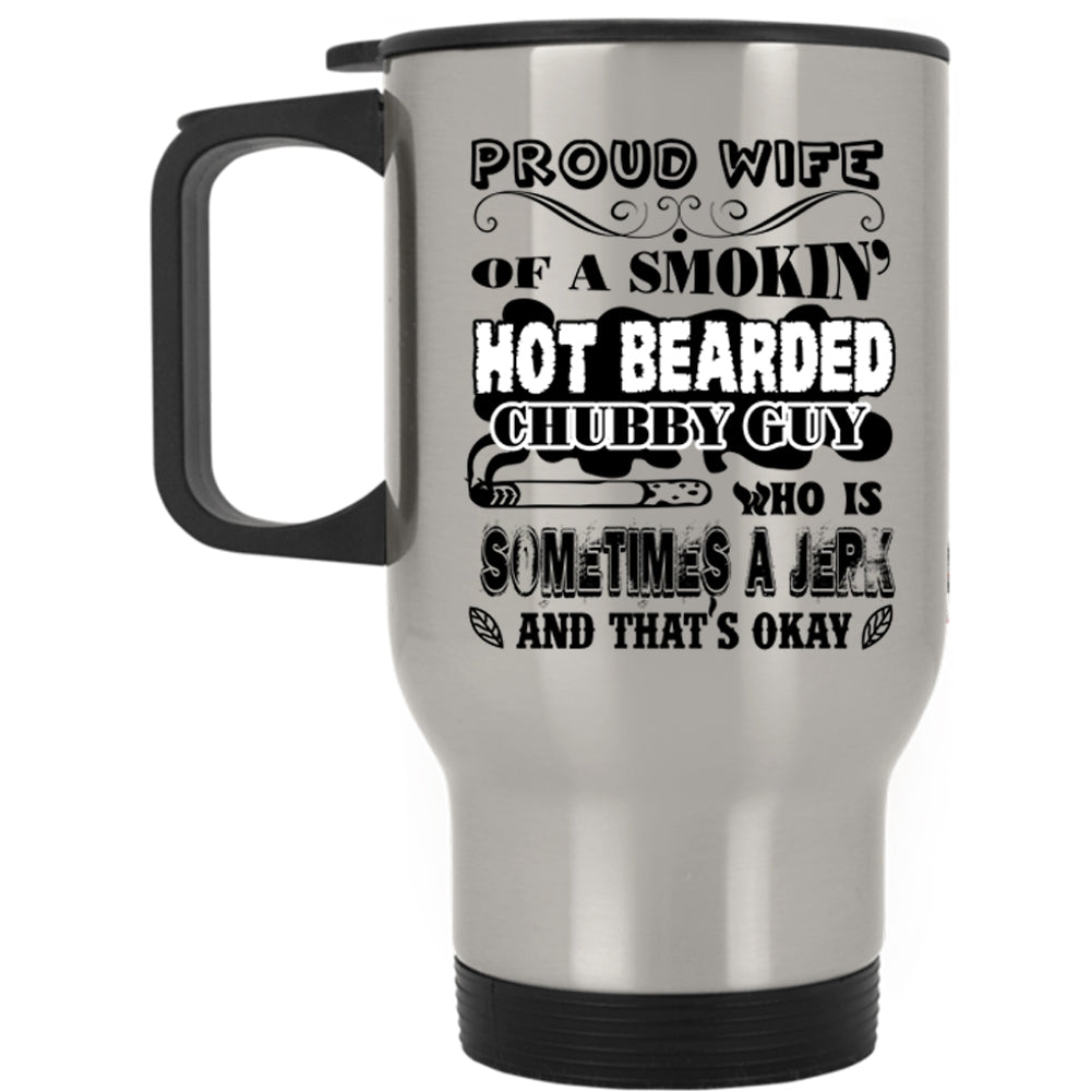 Cool Wife Travel Mug, Proud Wife Of A Hot Bearded Chubby Guy Mug