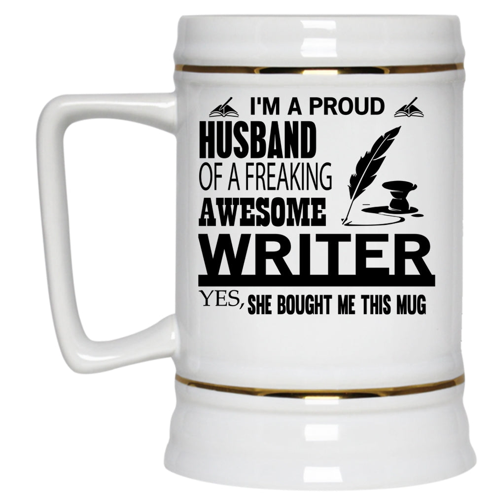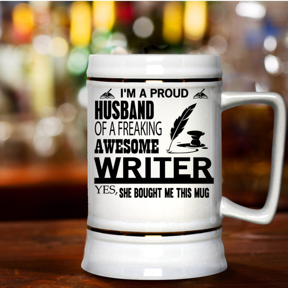 Cool Writer's Husband Beer Stein 22oz, I'm A Proud Husband Of A Writer Beer Mug