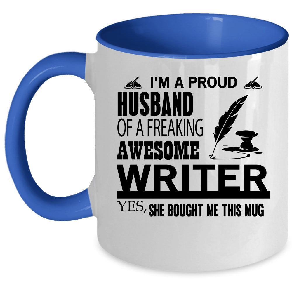 Cool Writer's Husband Coffee Mug, I'm A Proud Husband Of A Writer Accent Mug