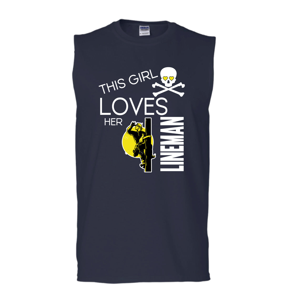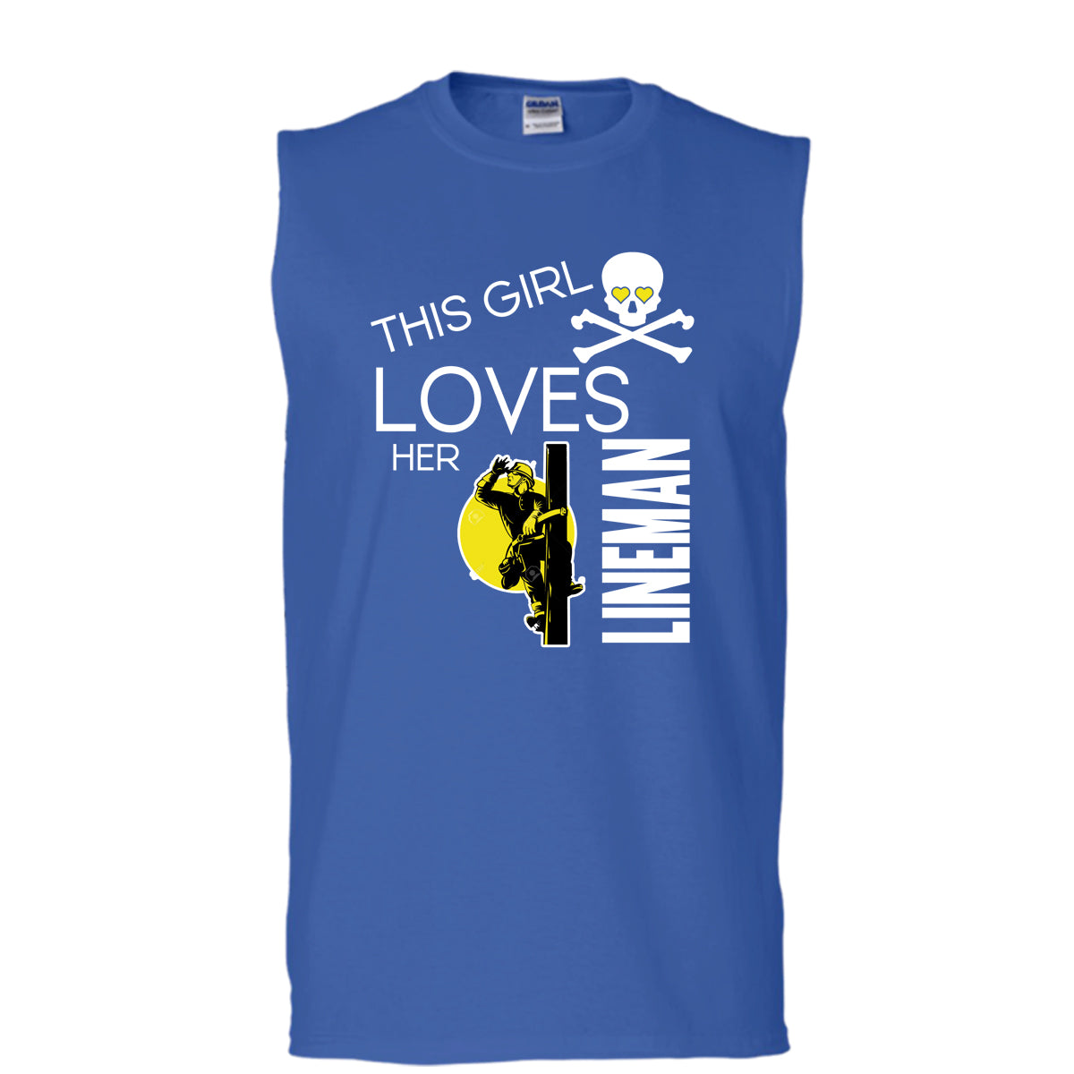 Coolest Lineman's Wife T Shirt, This Girl Loves Her Husband T Shirt, Cool T Shirt (Men's Cotton Sleeveless)