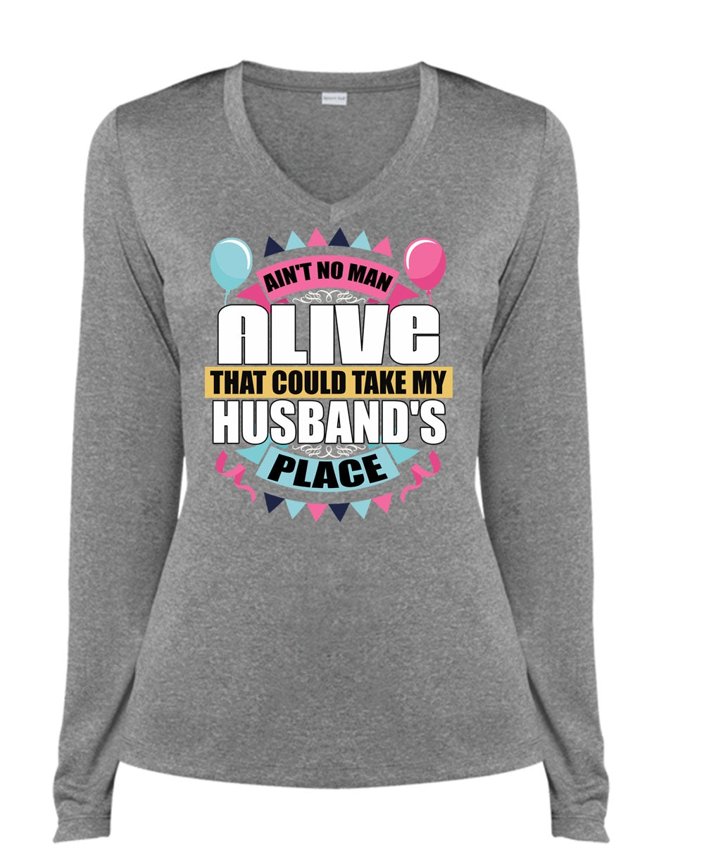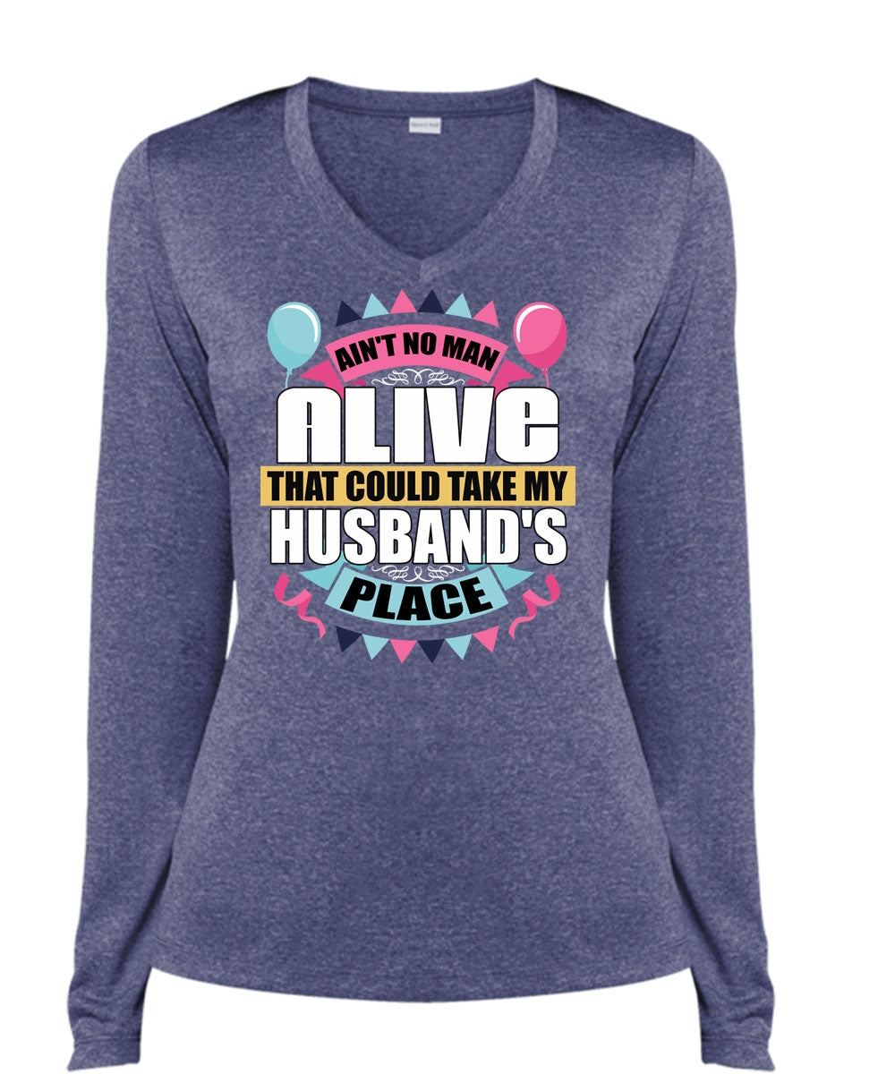 Could Take My Husband's Place T Shirt, Being A Husband T Shirt, Cool Shirt (Ladies LS Heather V-Neck)