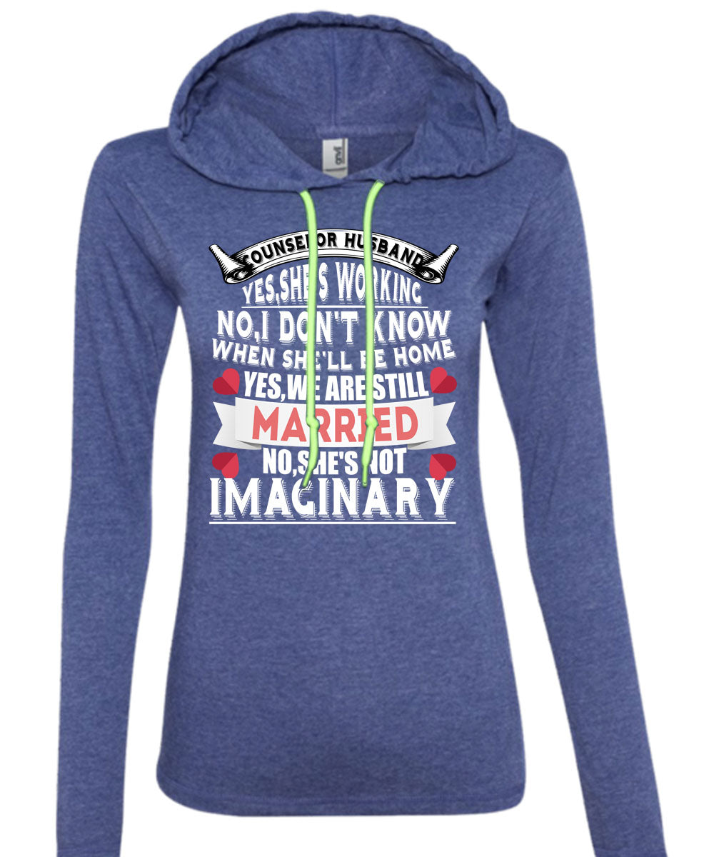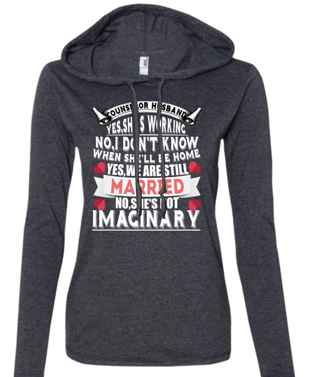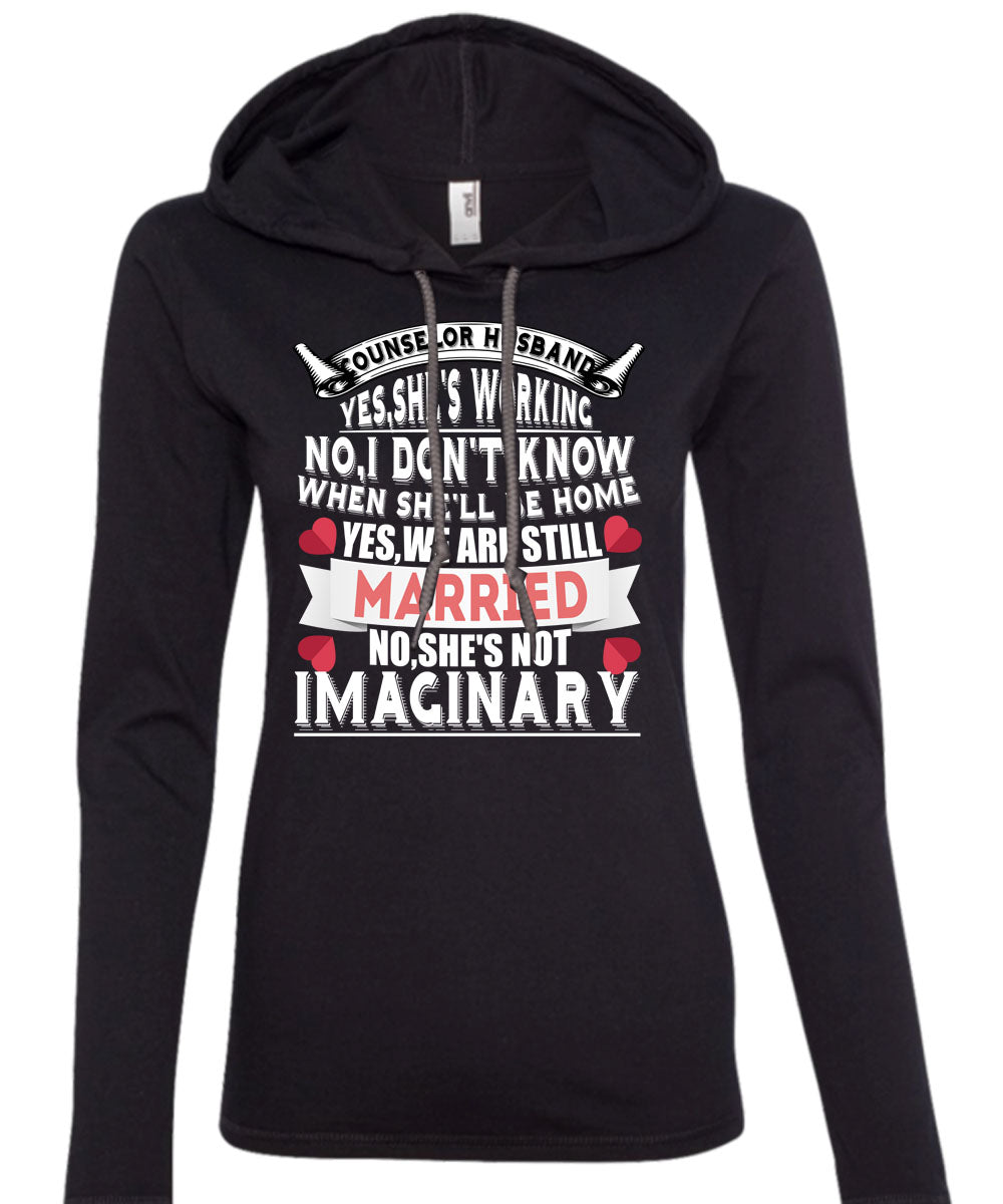 Counselor Husband She 's Working T Shirt, She's Not Imaginary T Shirt (Anvil Ladies Ringspun Hooded)