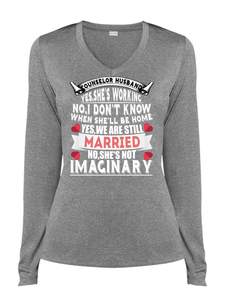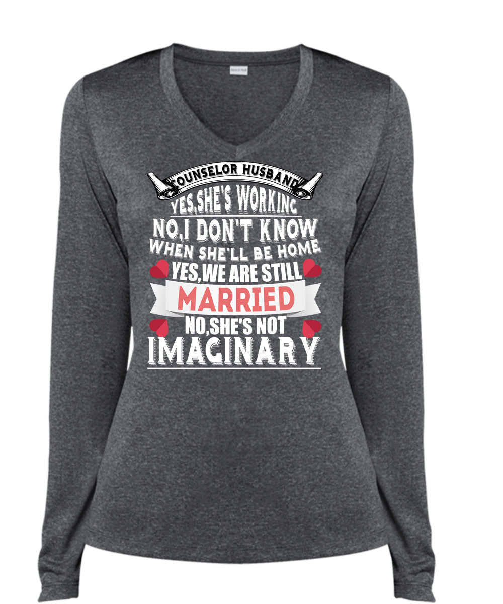 Counselor Husband She 's Working T Shirt, She's Not Imaginary T Shirt, Cool Shirt (Ladies LS Heather V-Neck)