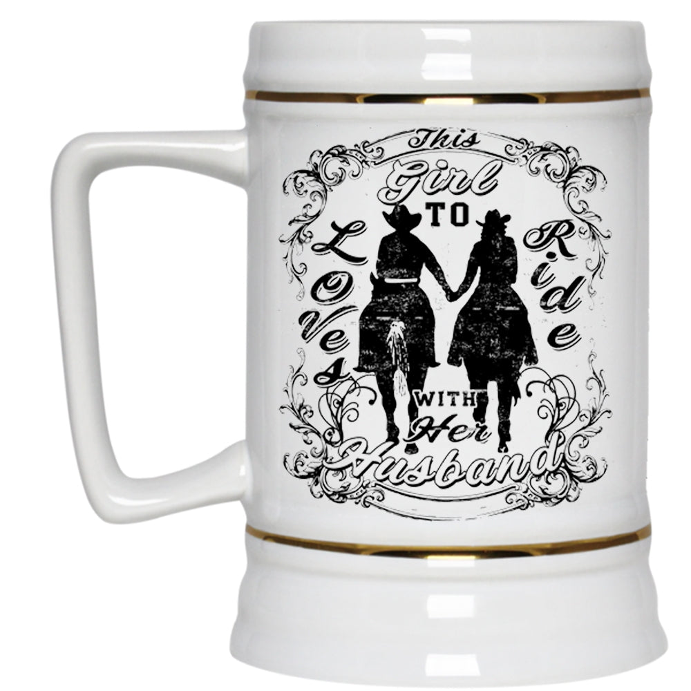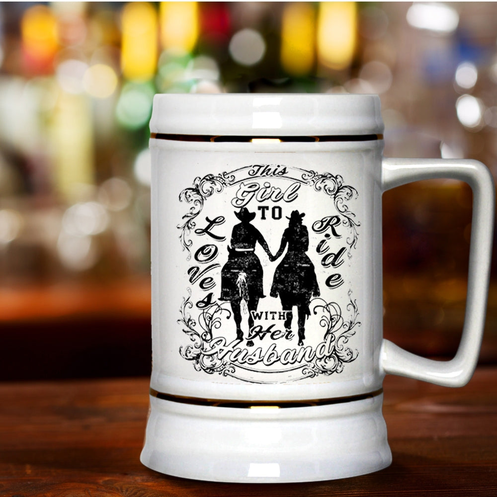 Couple Beer Stein 22oz, This Girl Loves To Ride With Her Husband Beer Mug