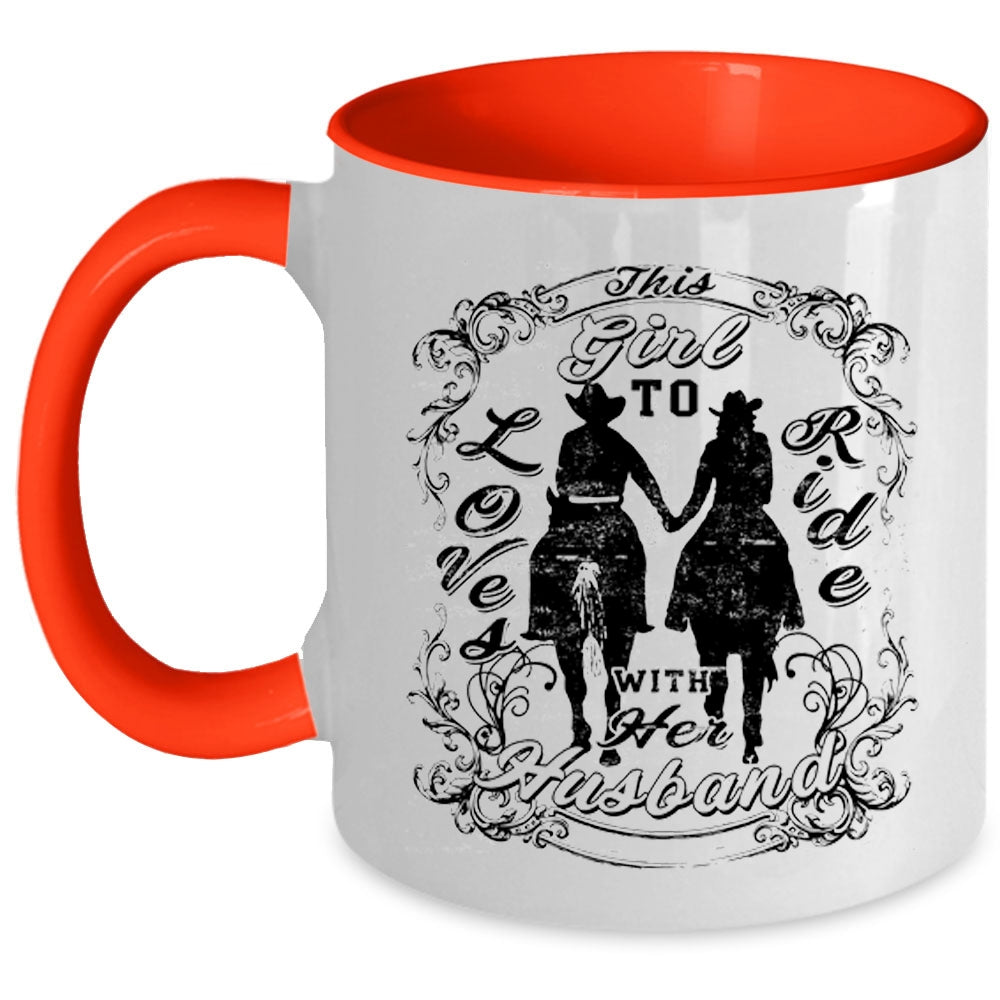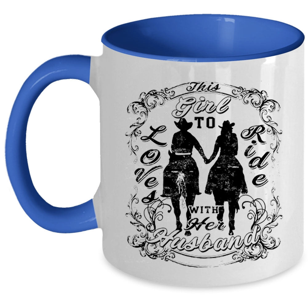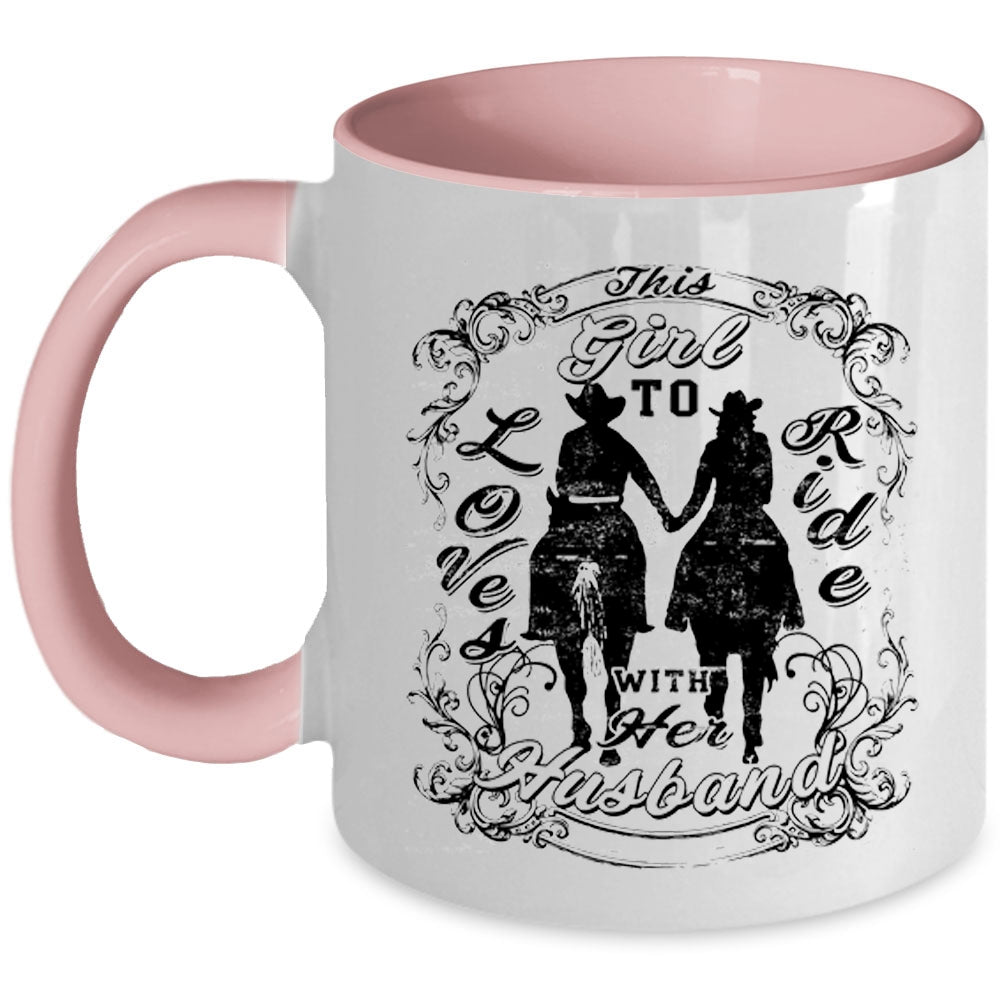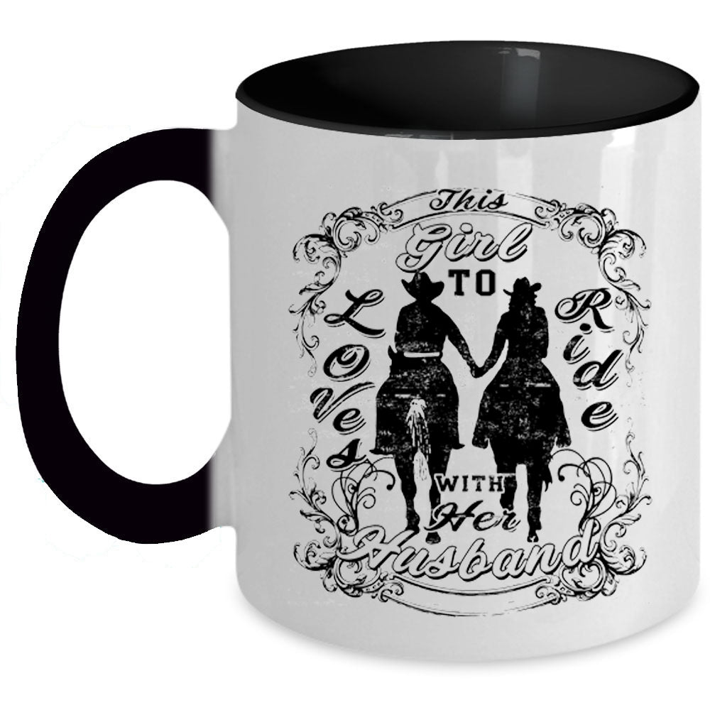 Couple Coffee Mug, This Girl Loves To Ride With Her Husband Accent Mug