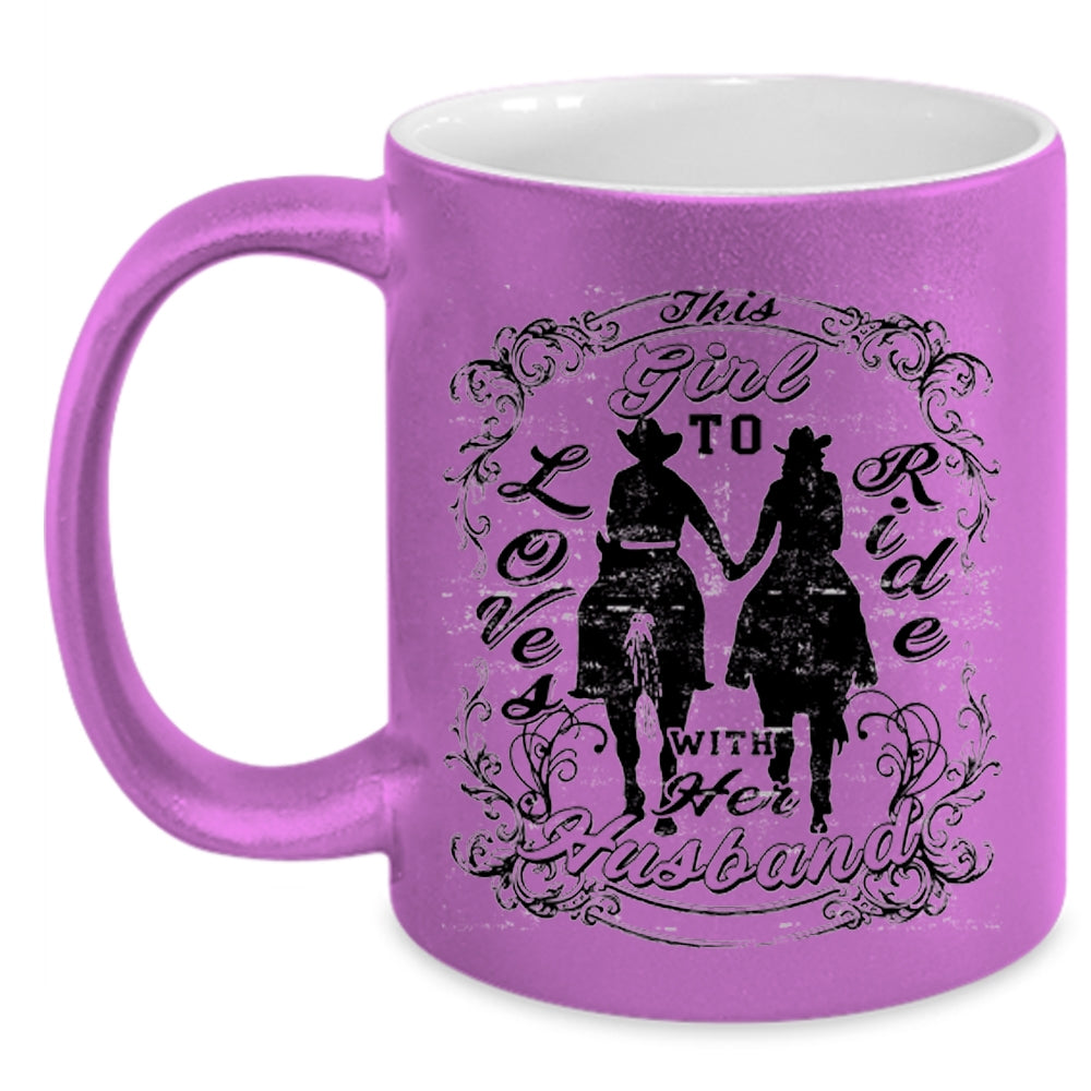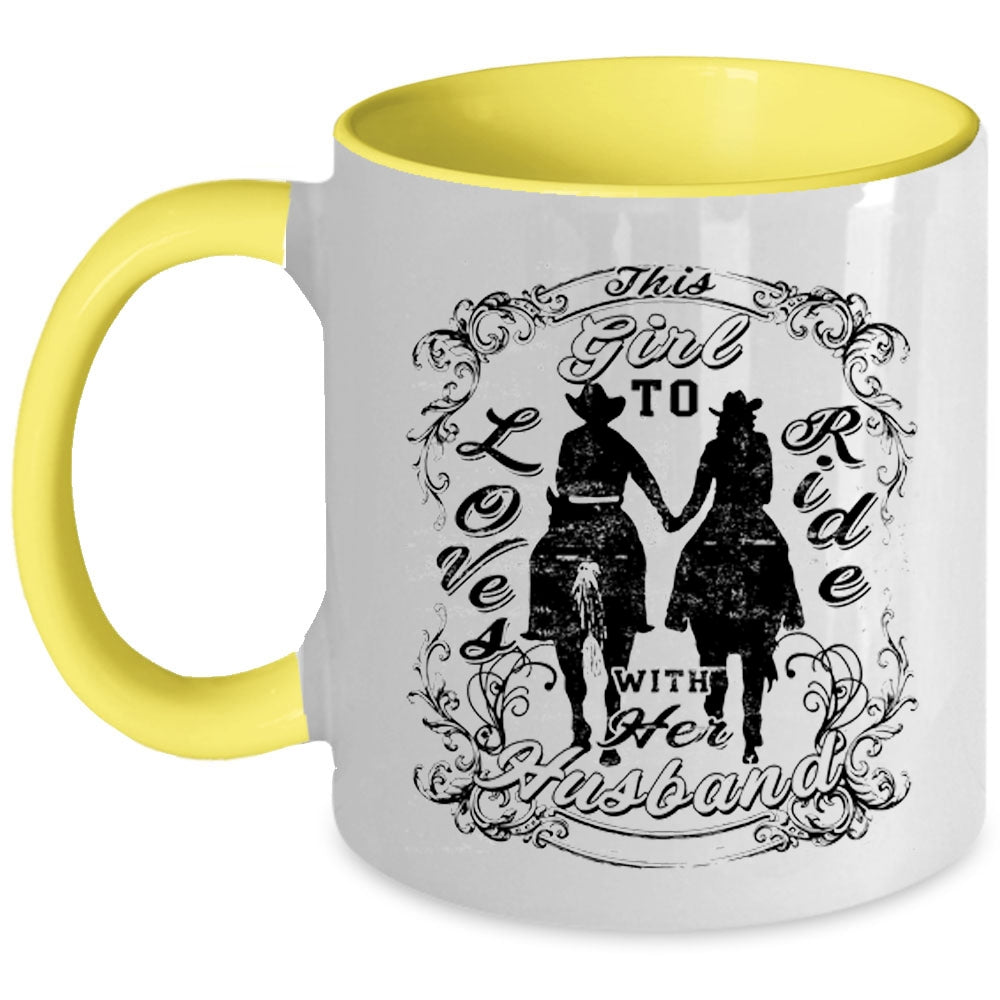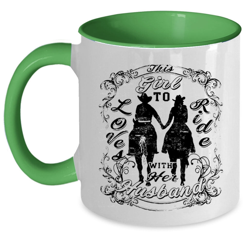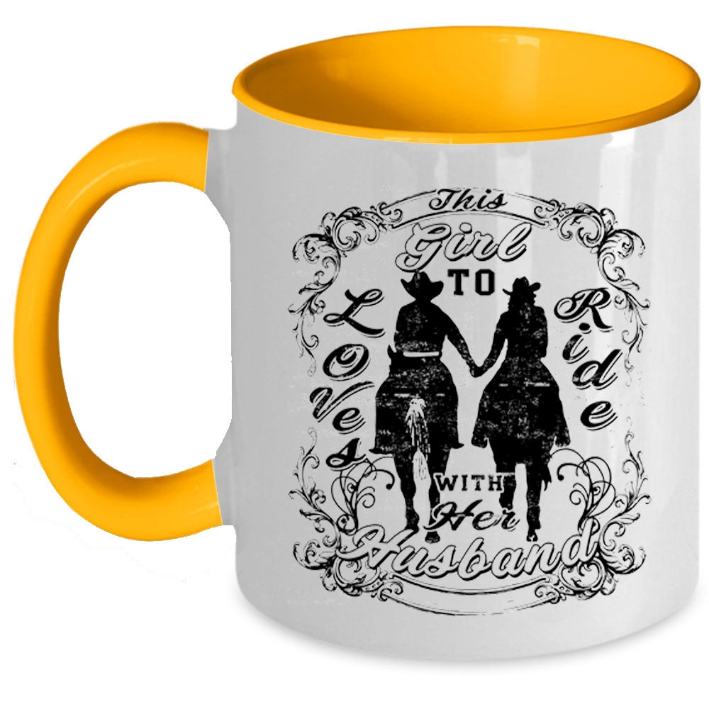 Couple Coffee Mug, This Girl Loves To Ride With Her Husband Accent Mug