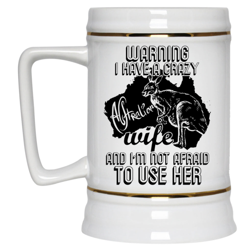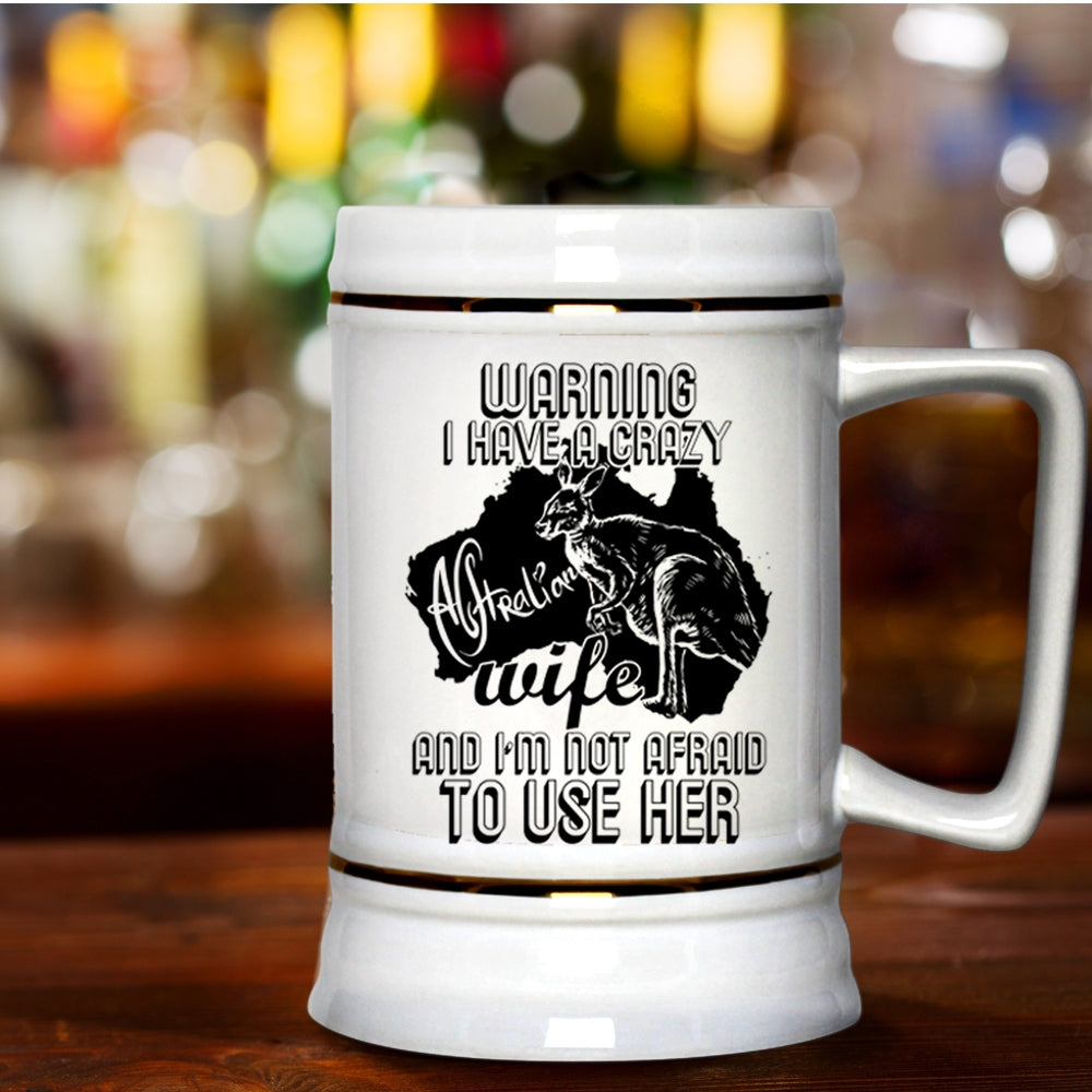 Crazy Australian Beer Stein 22oz, I Have A Crazy Australian Wife Beer Mug