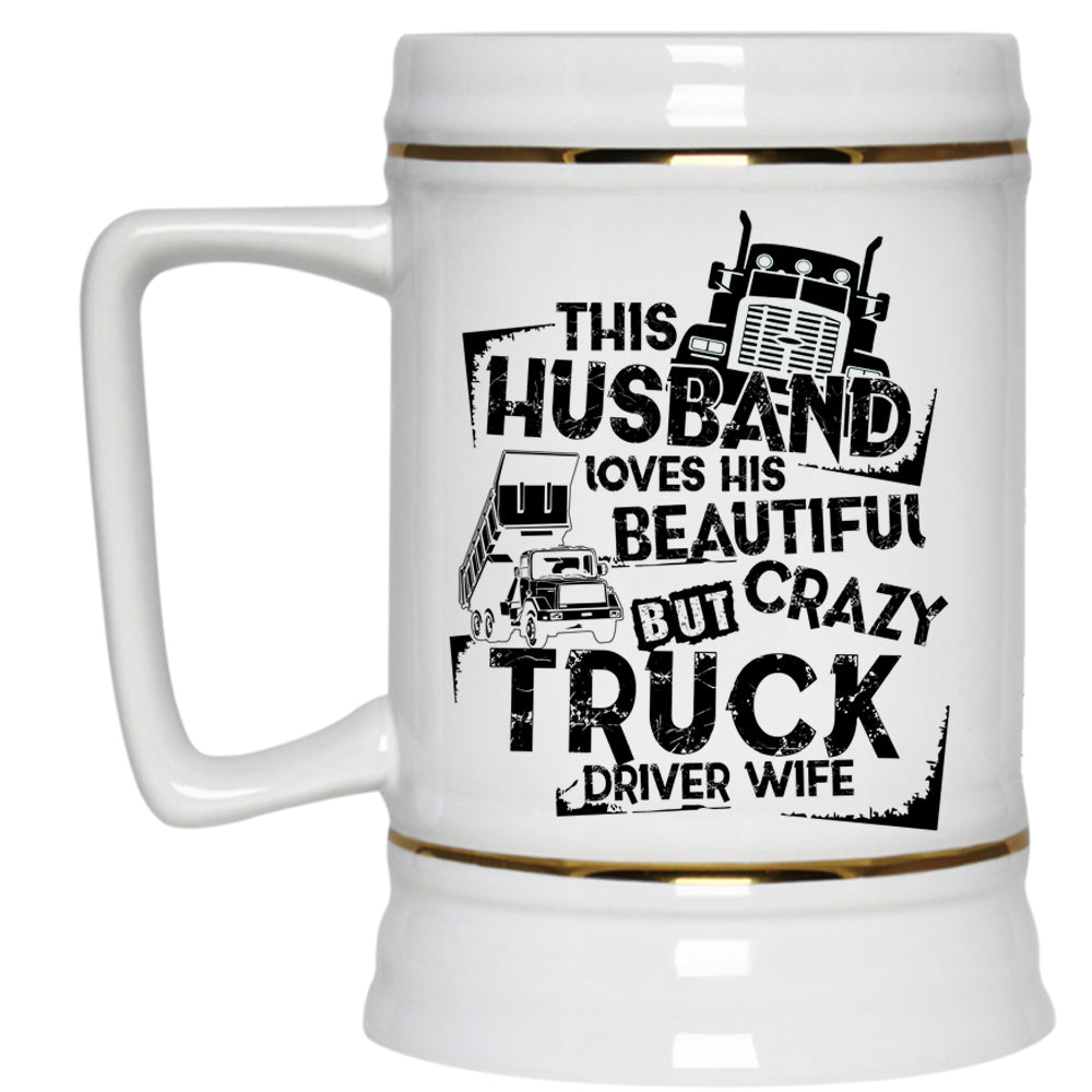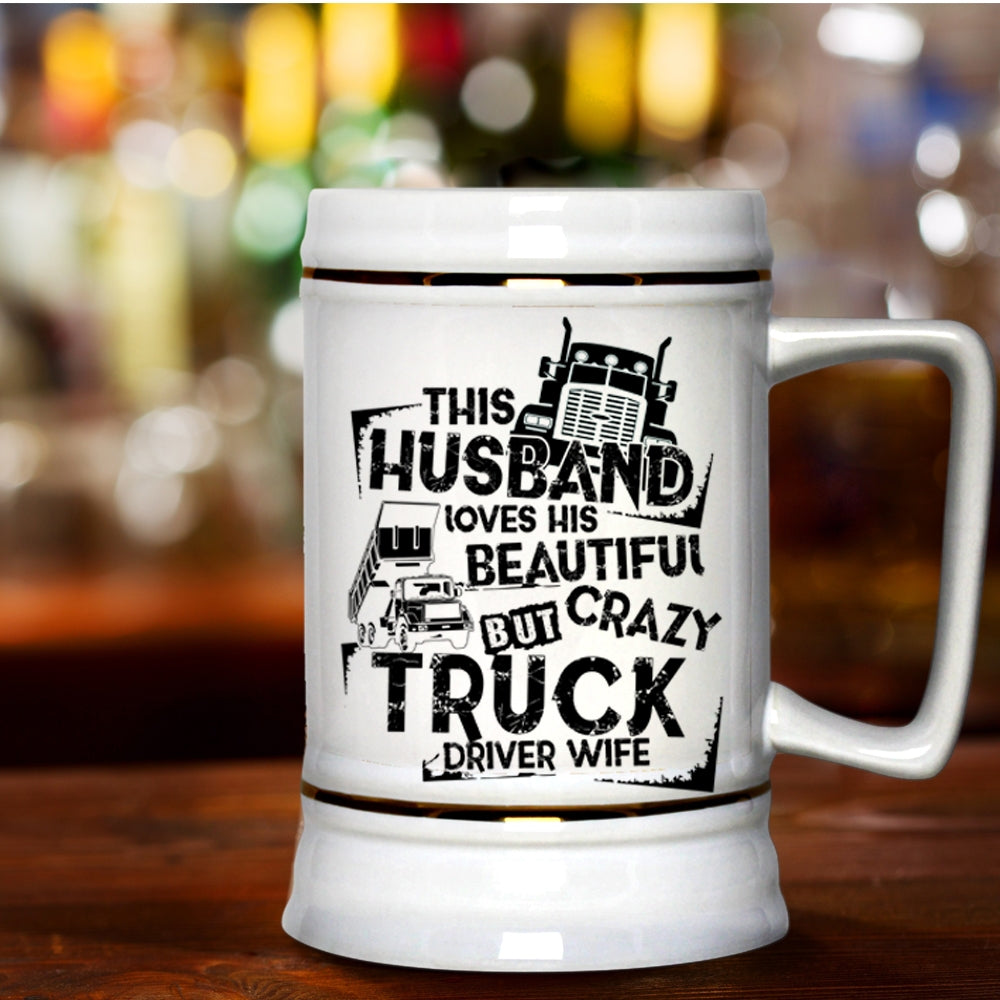 Crazy Trucker Beer Stein 22oz, This Husband Loves His Truck Driver Wife Beer Mug