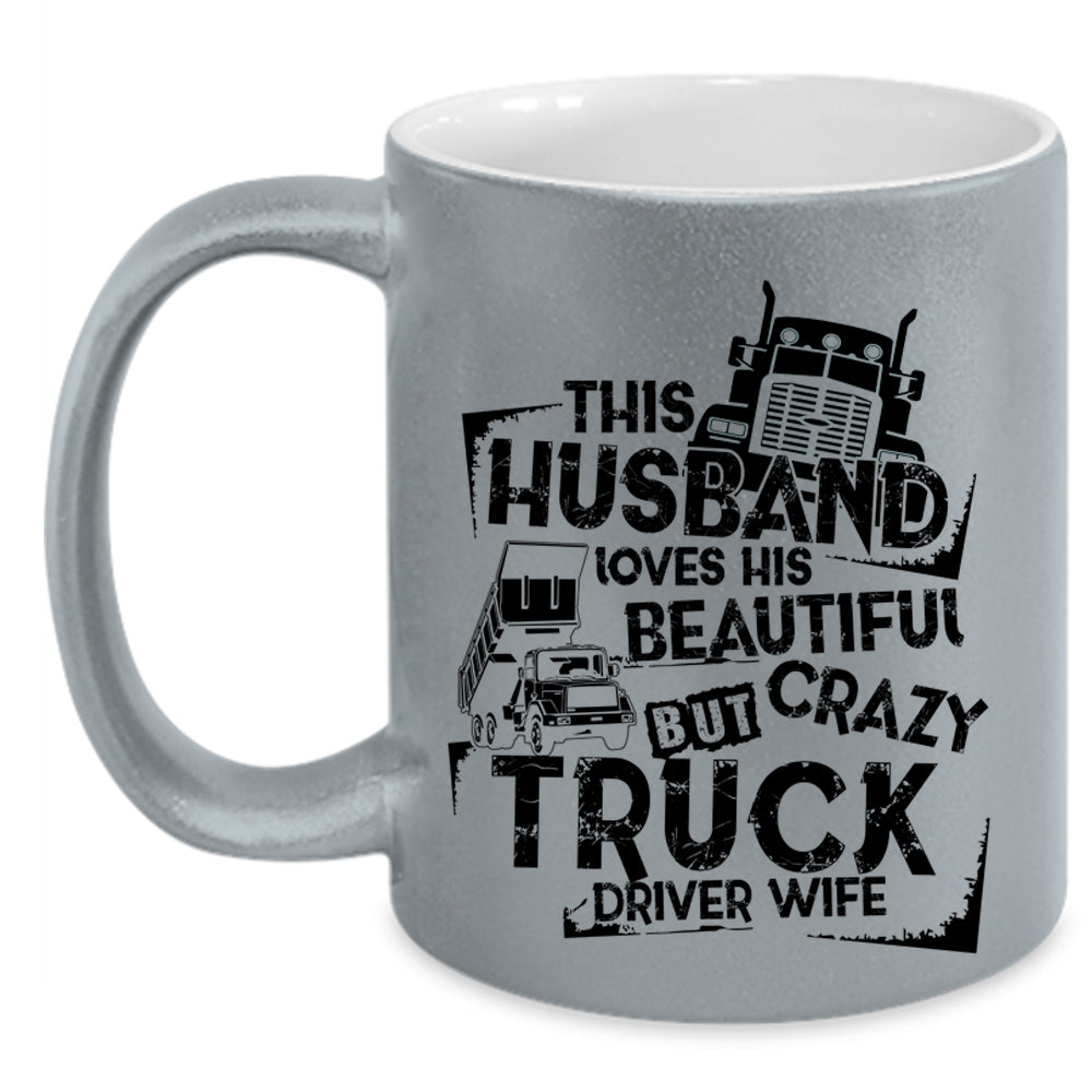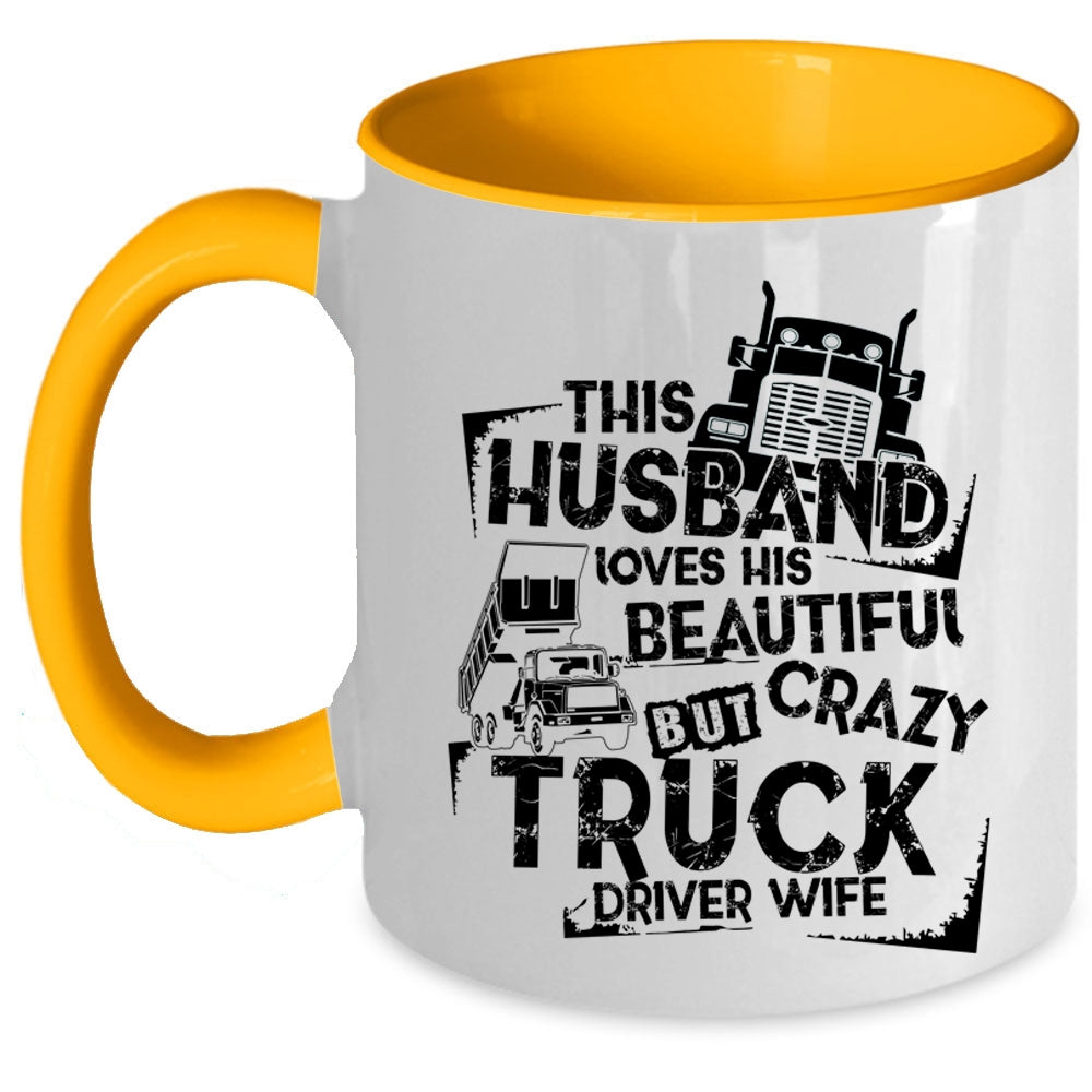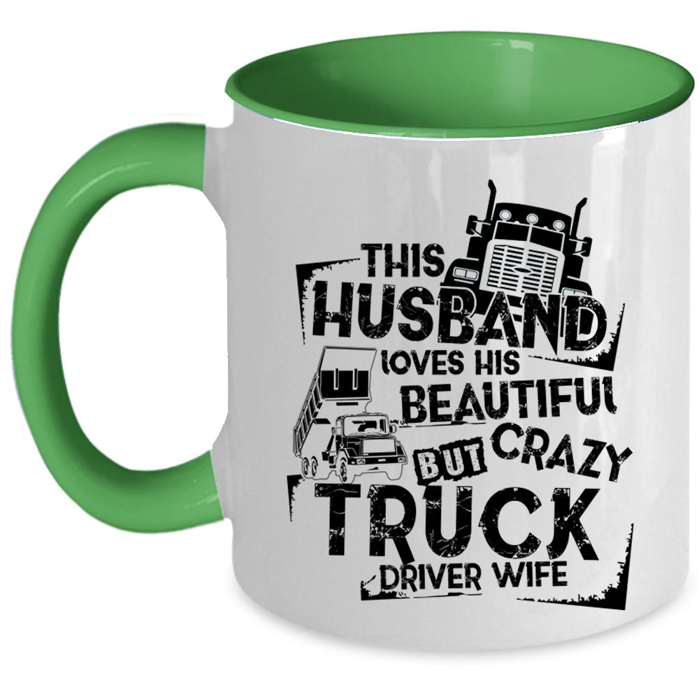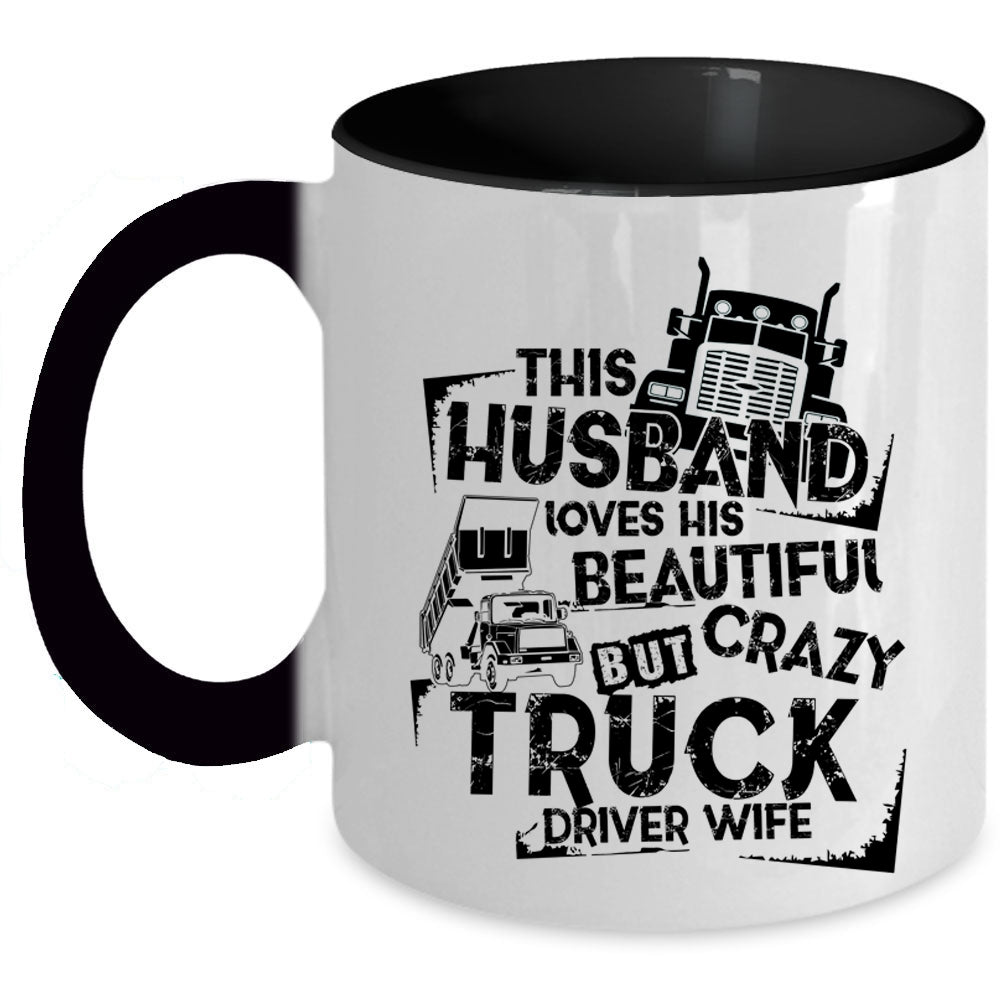 Crazy Trucker Coffee Mug, This Husband Loves His Truck Driver Wife Accent Mug