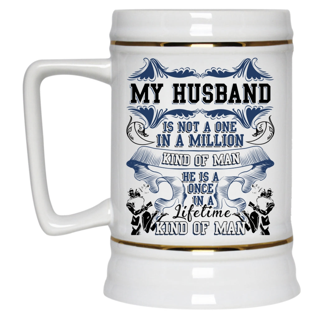 Cute Beer Stein 22oz, My Husband Is A Once In A Lifetime Kind Of Man Beer Mug