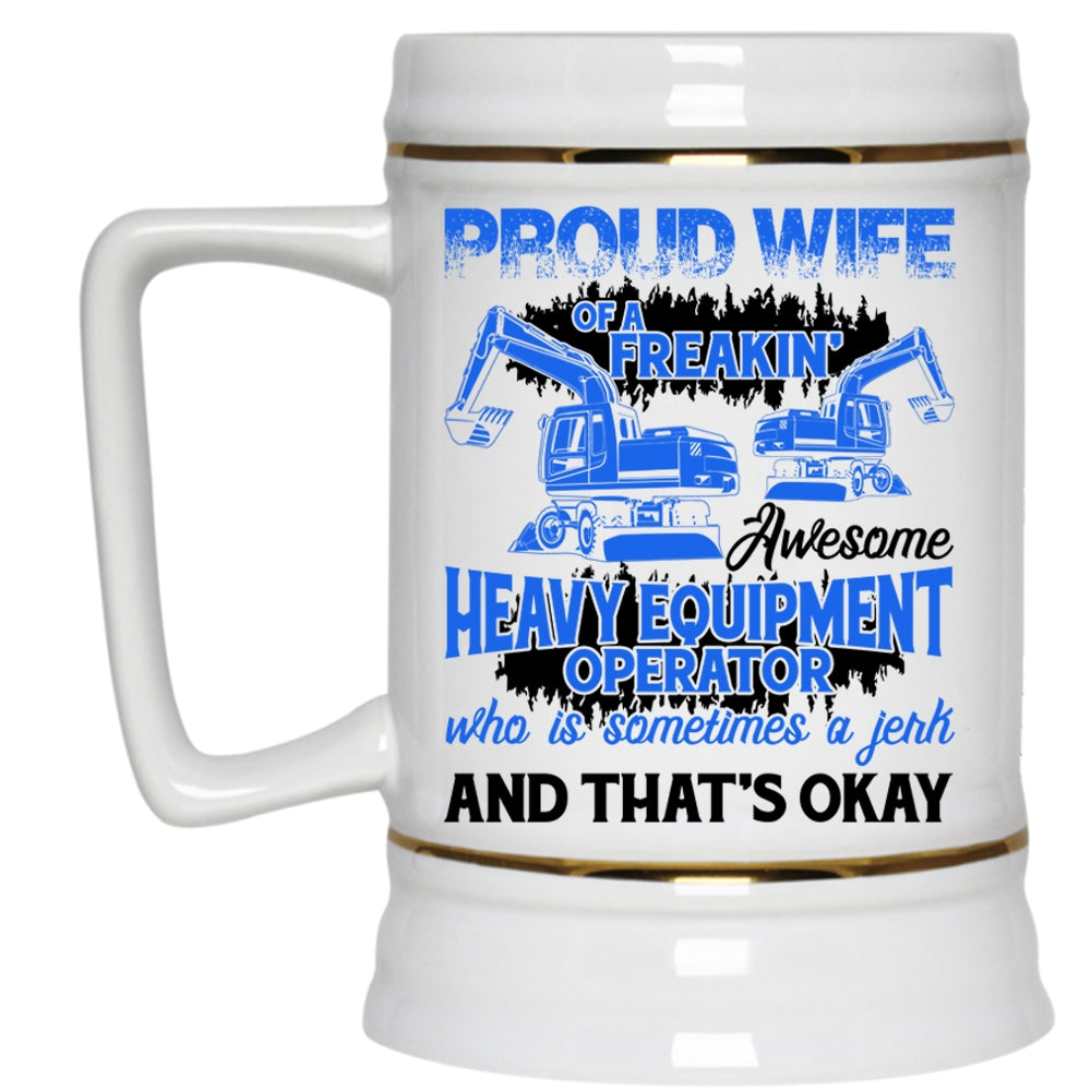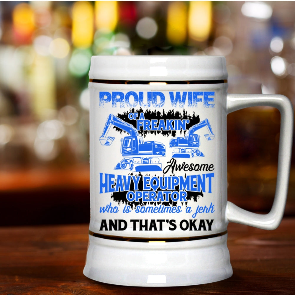 Cute Beer Stein 22oz, Proud Wife Of A Heavy Equipment Operator Beer Mug
