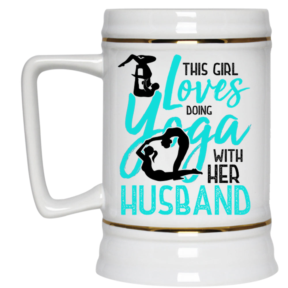 Cute Beer Stein 22oz, This Girl Loves Doing Yoga With Her Husband Beer Mug