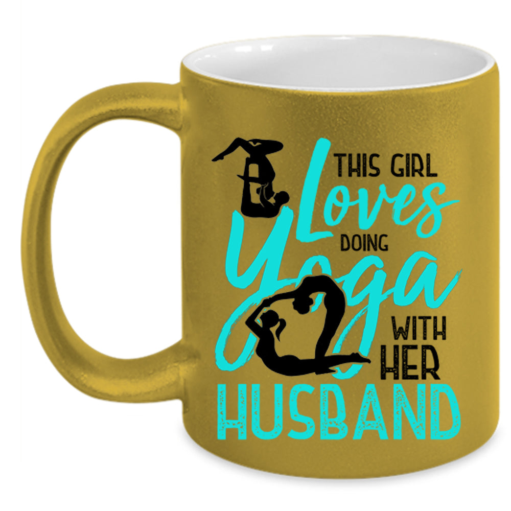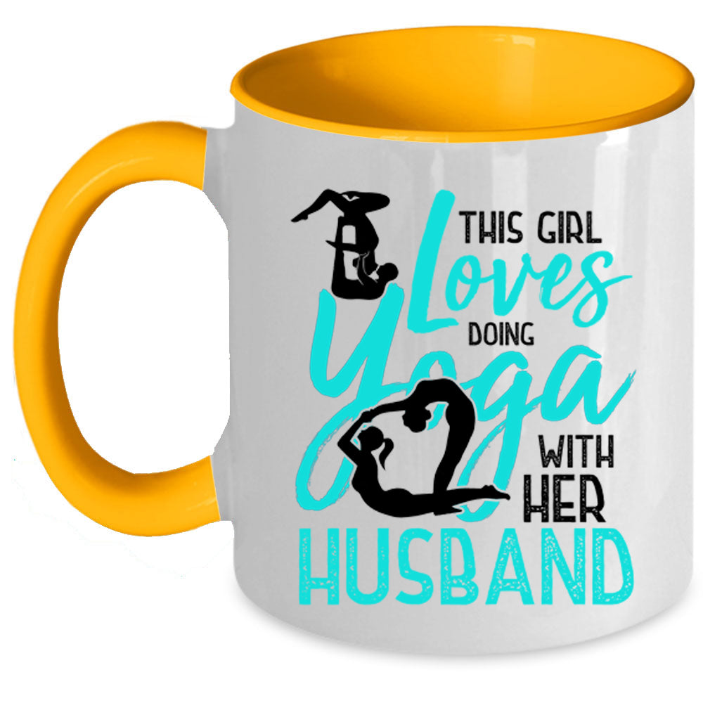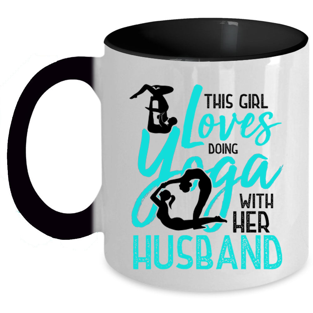 Cute Coffee Mug, This Girl Loves Doing Yoga With Her Husband Accent Mug