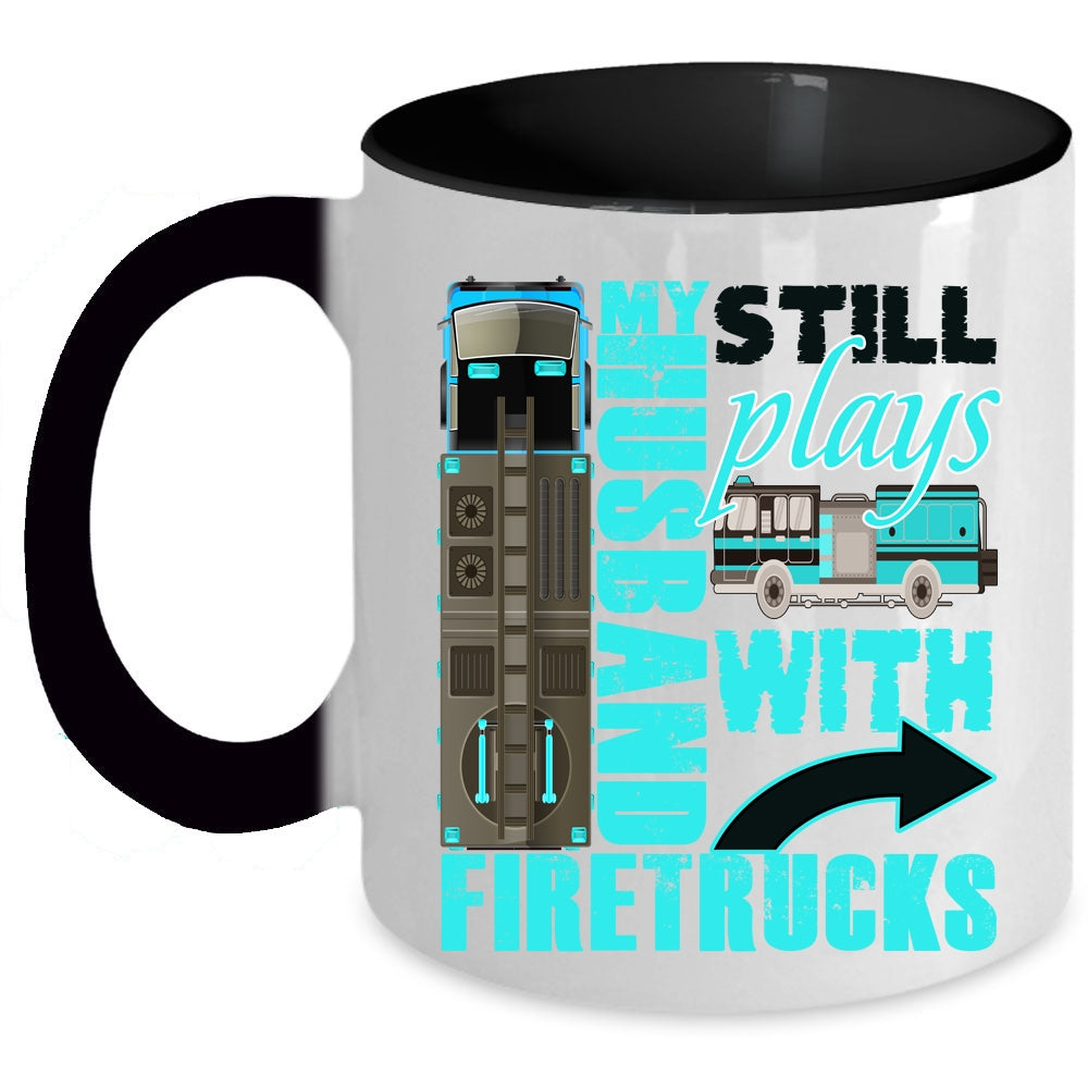 Cute Fireman's Wife Coffee Mug, My Husband Still Plays With Firetrucks Accent Mug