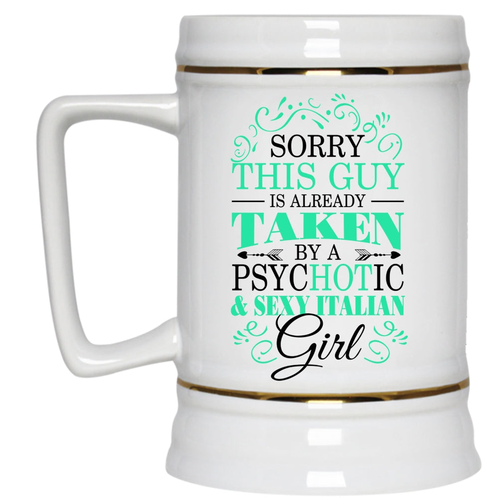 Cute Gift For Husband Beer Stein 22oz, Taken By A Psychotic Italian Girl Beer Mug