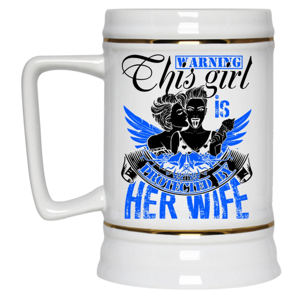 Cute Gift For Les Beer Stein 22oz, This Girl Is Protected By Her Wife Beer Mug