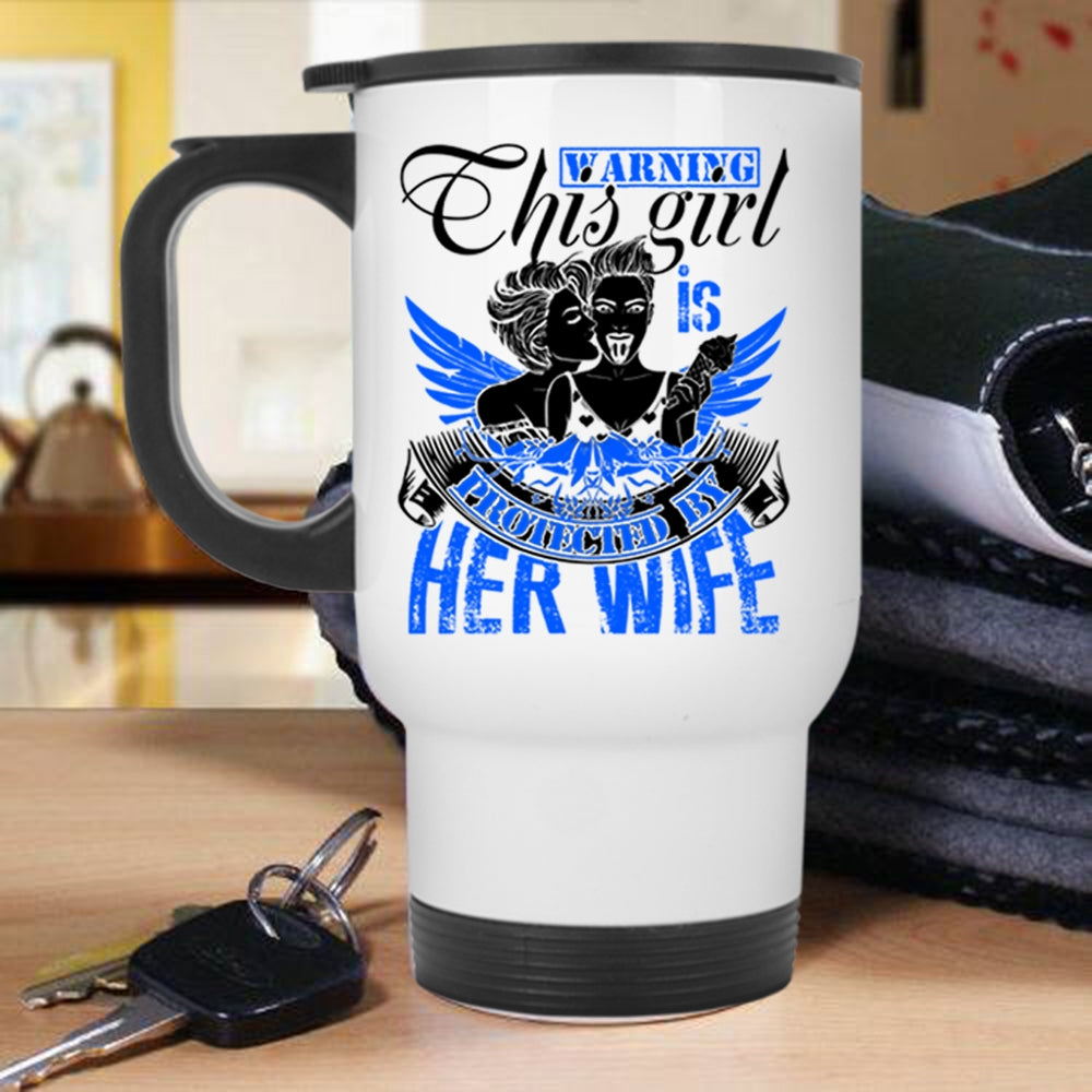 Cute Gift For Les Travel Mug, This Girl Is Protected By Her Wife Mug