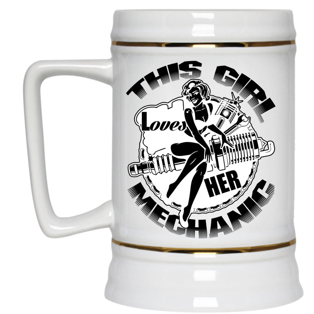 Cute Gift For Mechanic's Wife Beer Stein 22oz, This Girl Loves Her Mechanic Beer Mug