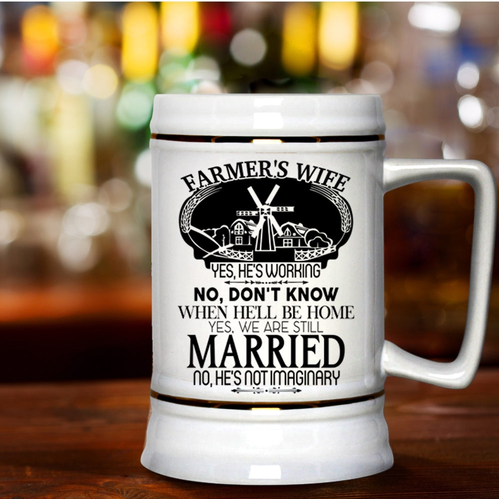 Cute Gift For My Wife Beer Stein 22oz, Farmer's Wife Beer Mug