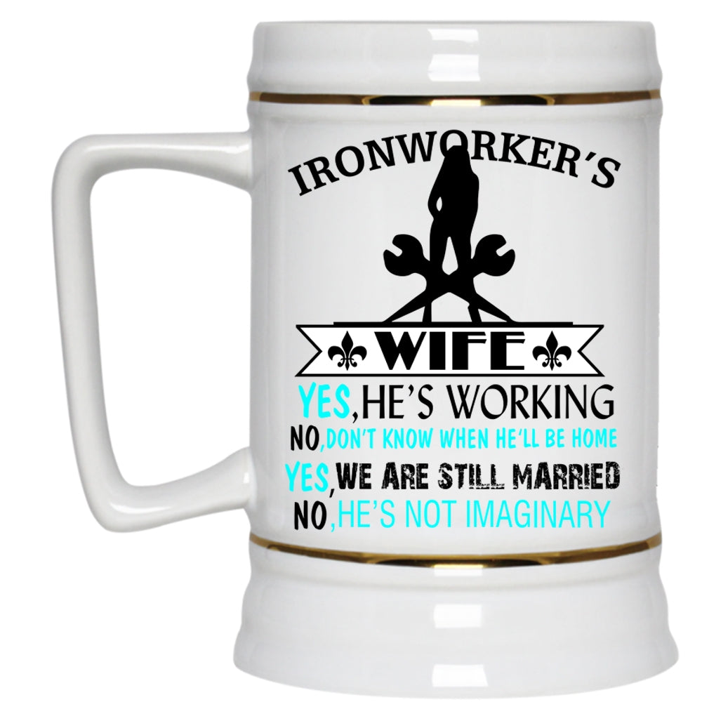 Cute Gift For My Wife Beer Stein 22oz, Ironworker's Wife Beer Mug