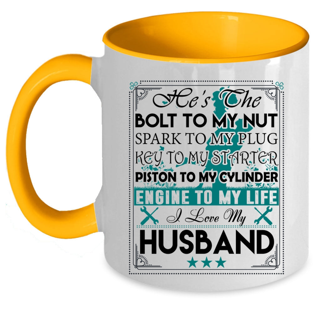 Cute Gift For My Wife Coffee Mug, I Love My Husband Accent Mug