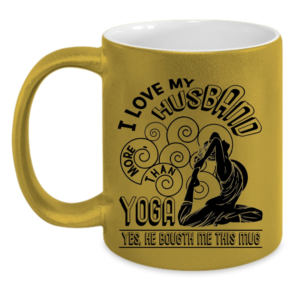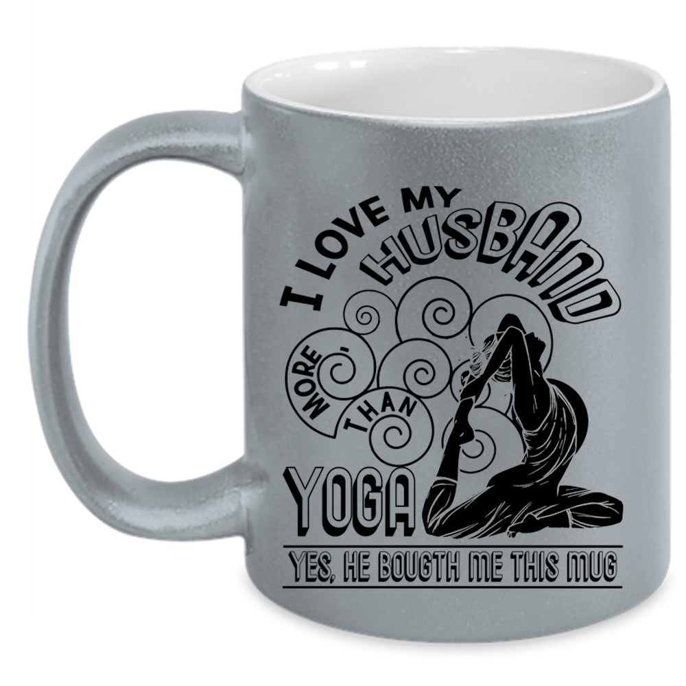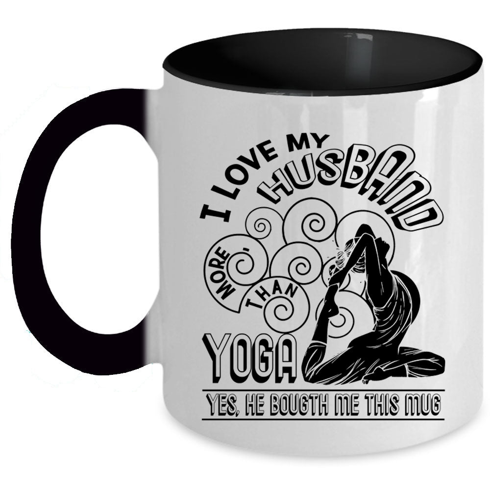 Cute Gift For My Wife Coffee Mug, I Love My Husband More Than Yoga Accent Mug