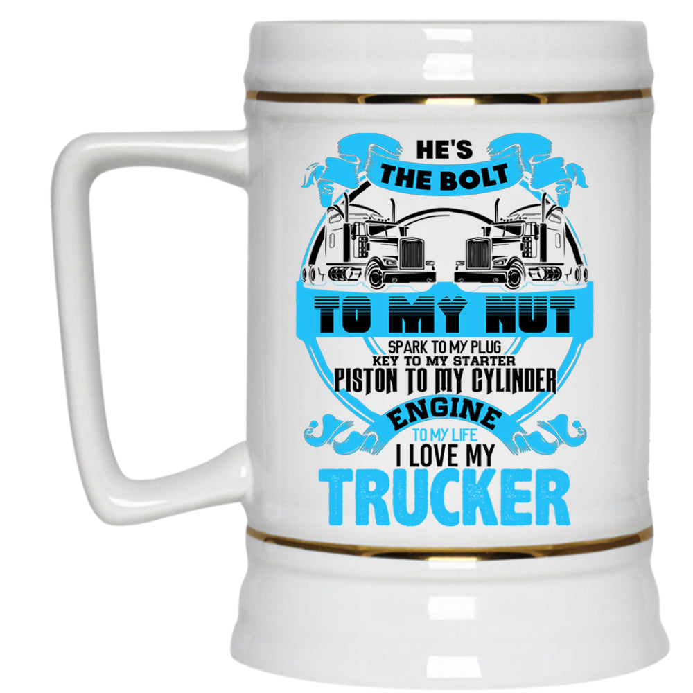Cute Gift For Trucker's Wife Beer Stein 22oz, I Love My Trucker Beer Mug