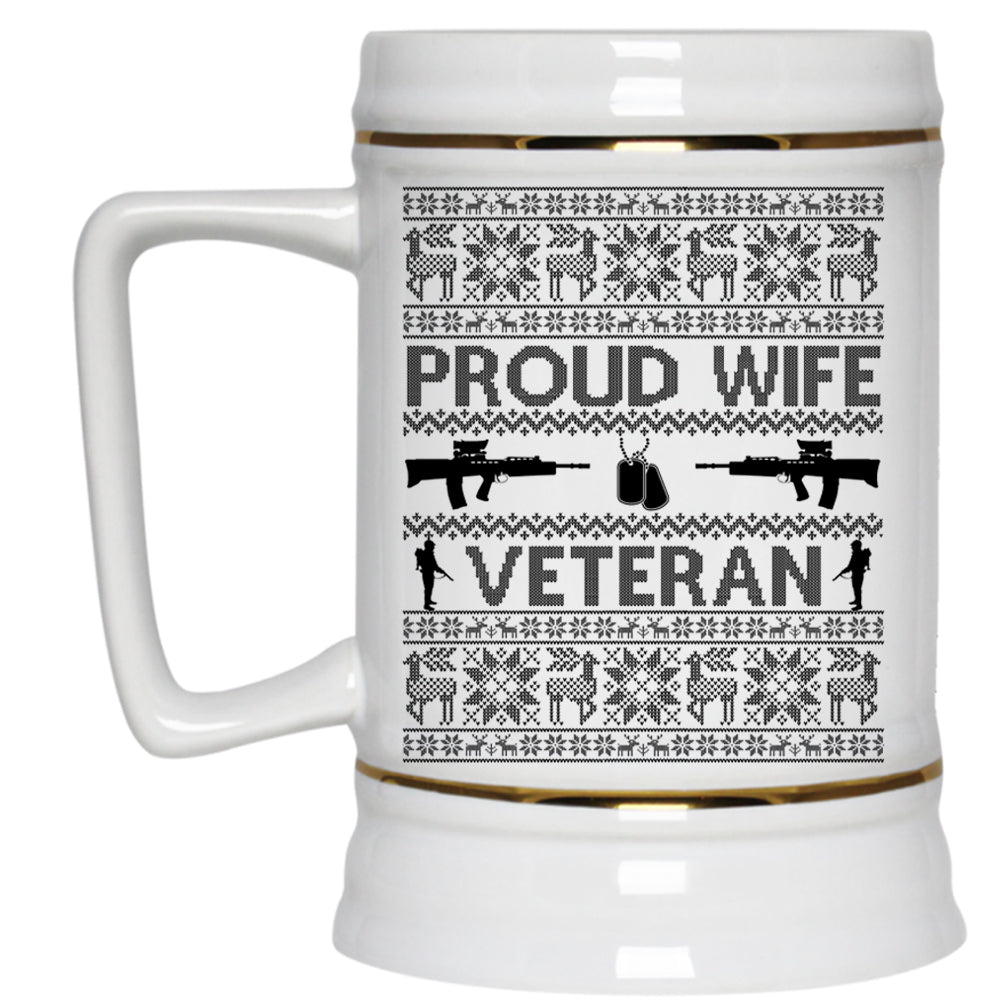 Cute Gift For Veteran's Wife Beer Stein 22oz, Proud Wife Veteran Beer Mug