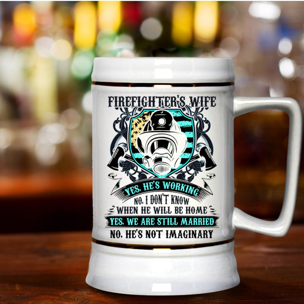 Cute Gift For Wedding Beer Stein 22oz, Firefighter's Wife Beer Mug