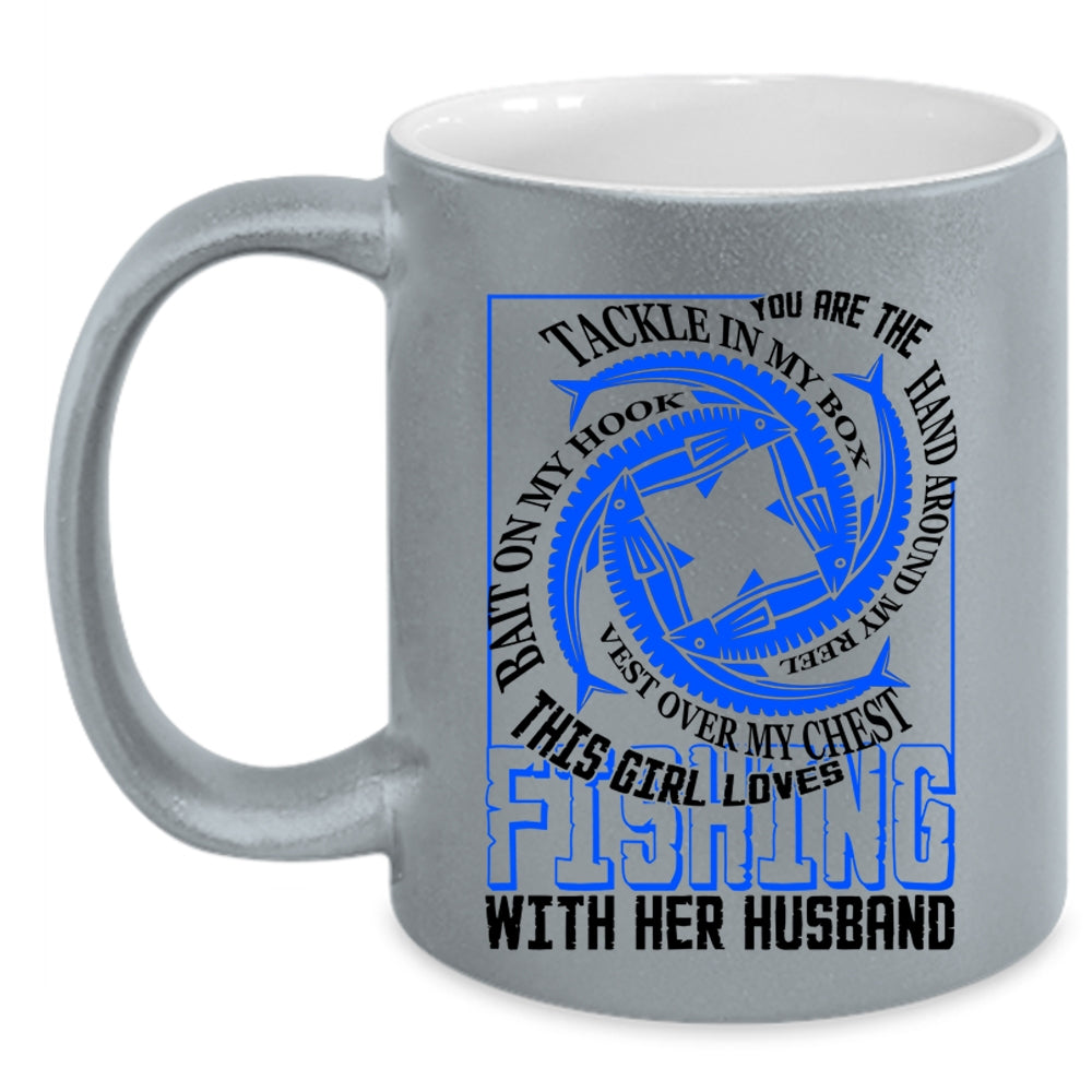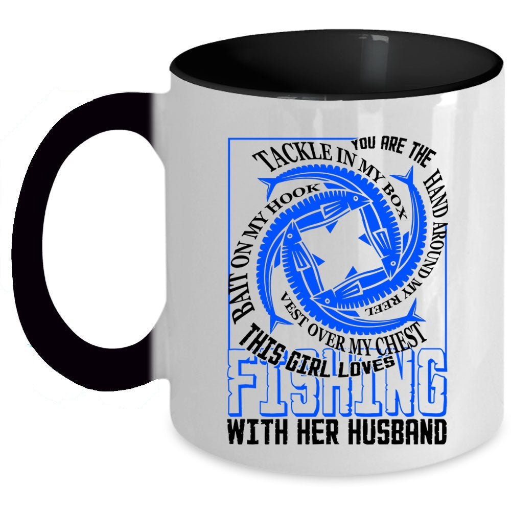 Cute Girls Coffee Mug, This Girl Loves Fishing With Her Husband Accent Mug