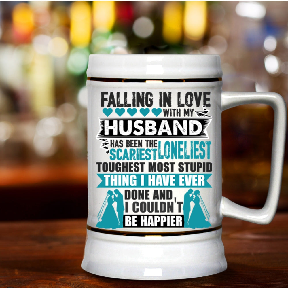 Cute Love Beer Stein 22oz, Falling In Love With My Husband Beer Mug
