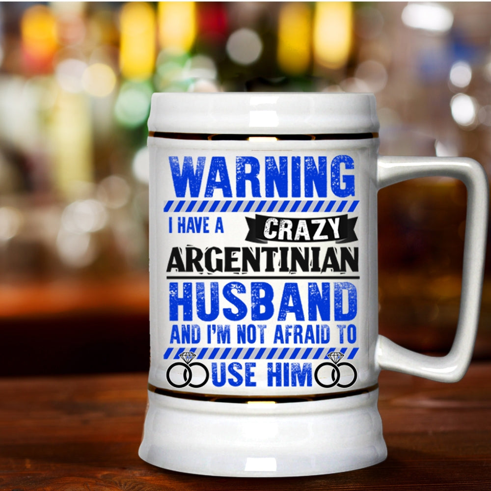 Cute Love Beer Stein 22oz, I Have A Crazy Argentinian Husband Beer Mug