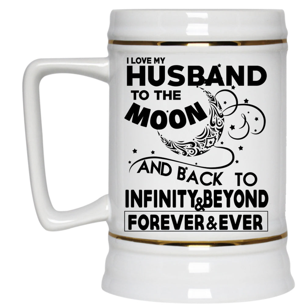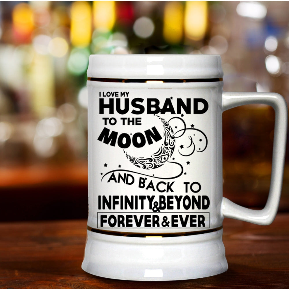 Cute Love Beer Stein 22oz, I Love My Husband To The Moon And Back Beer Mug
