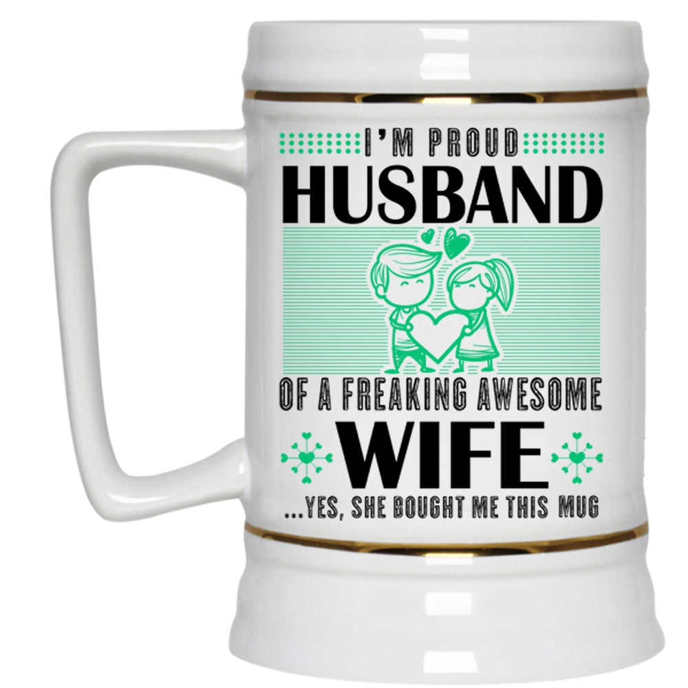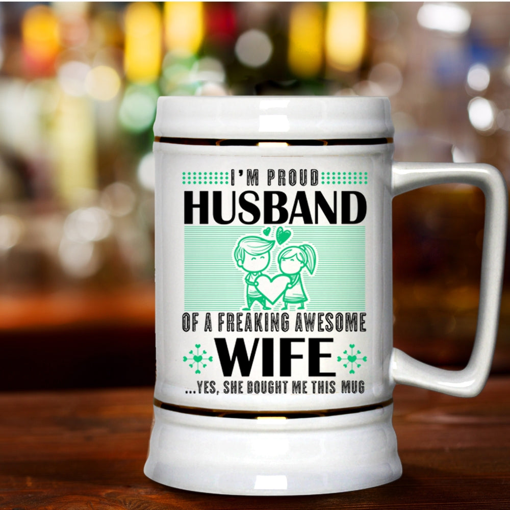 Cute Love Beer Stein 22oz, I'm Proud Husband Of An Awesome Wife Beer Mug