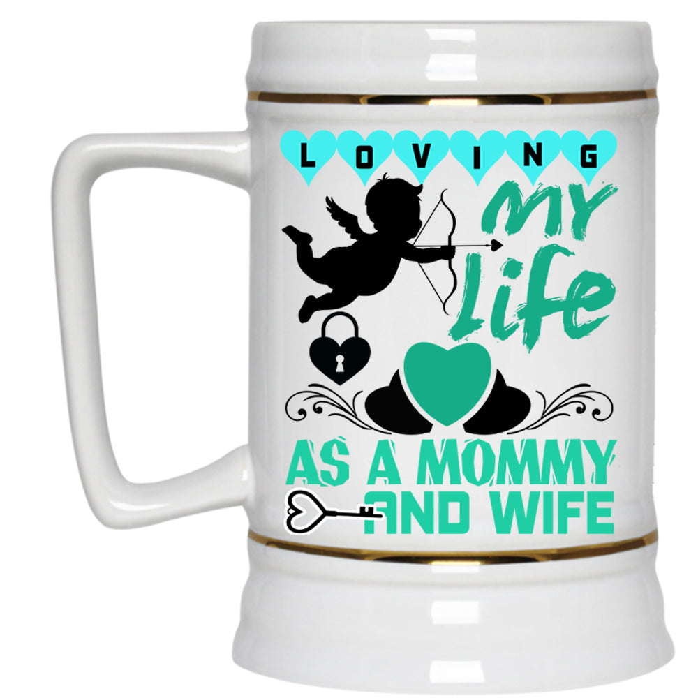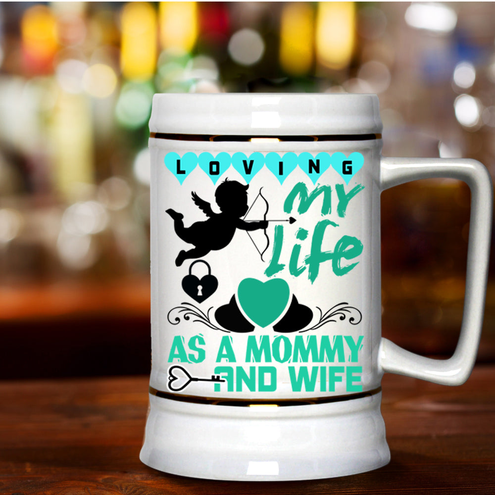 Cute Love Beer Stein 22oz, Loving My Life As A Mommy And Wife Beer Mug