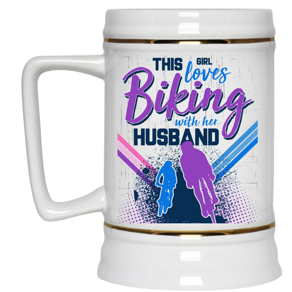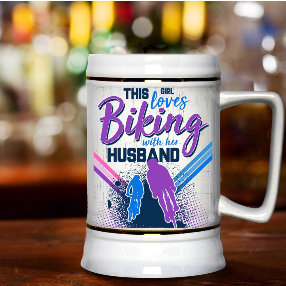 Cute Love Beer Stein 22oz, This Girl Loves Biking With Her Husband Beer Mug