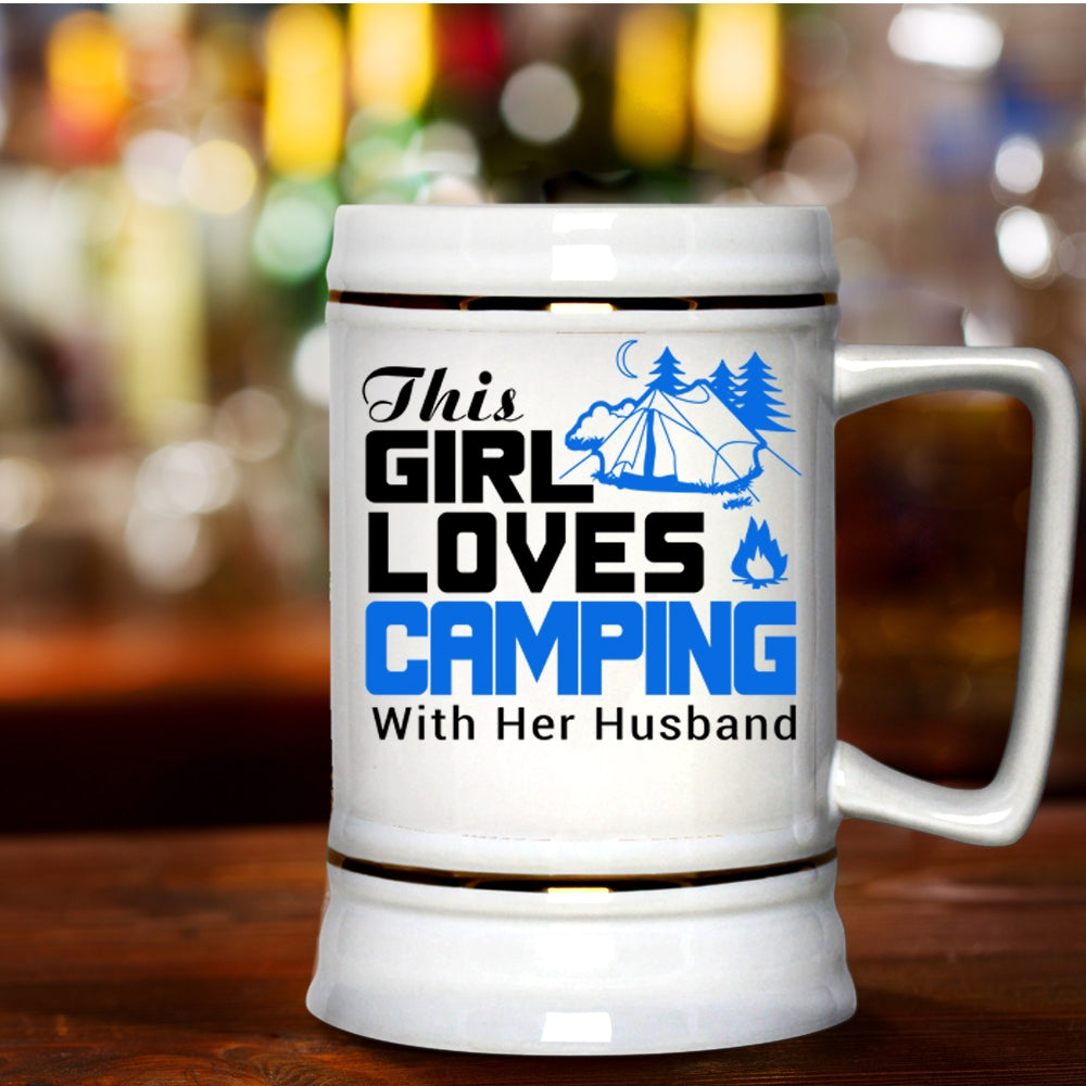 Cute Love Beer Stein 22oz, This Girls Loves Camping With Her Husband Beer Mug