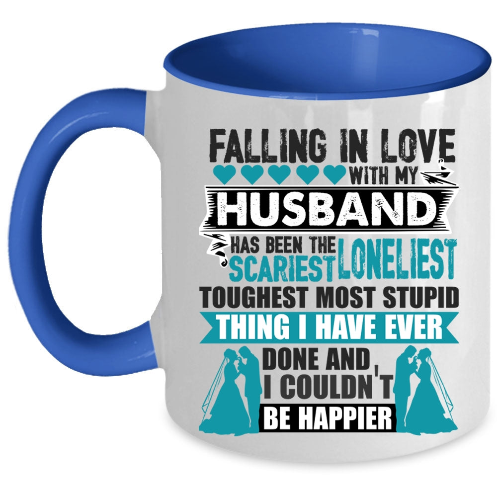 Cute Love Coffee Mug, Falling In Love With My Husband Accent Mug