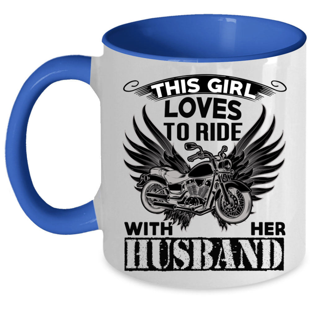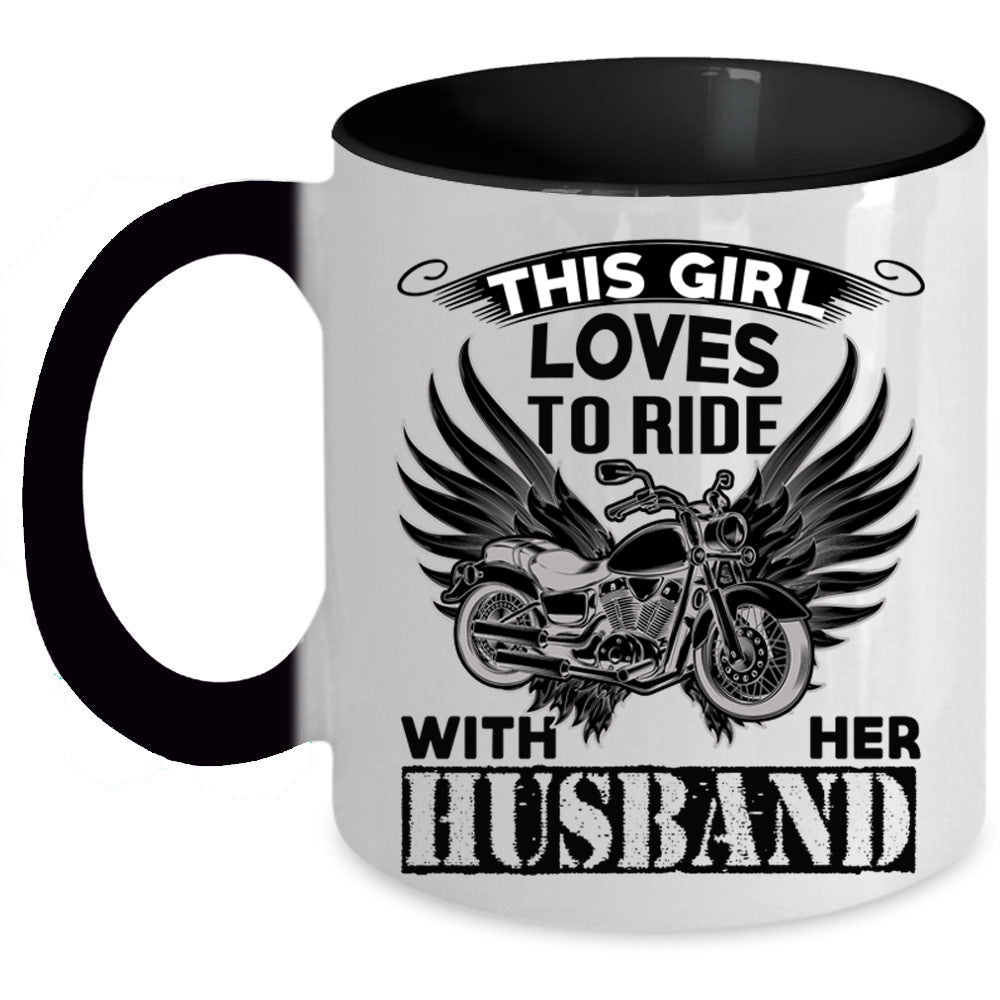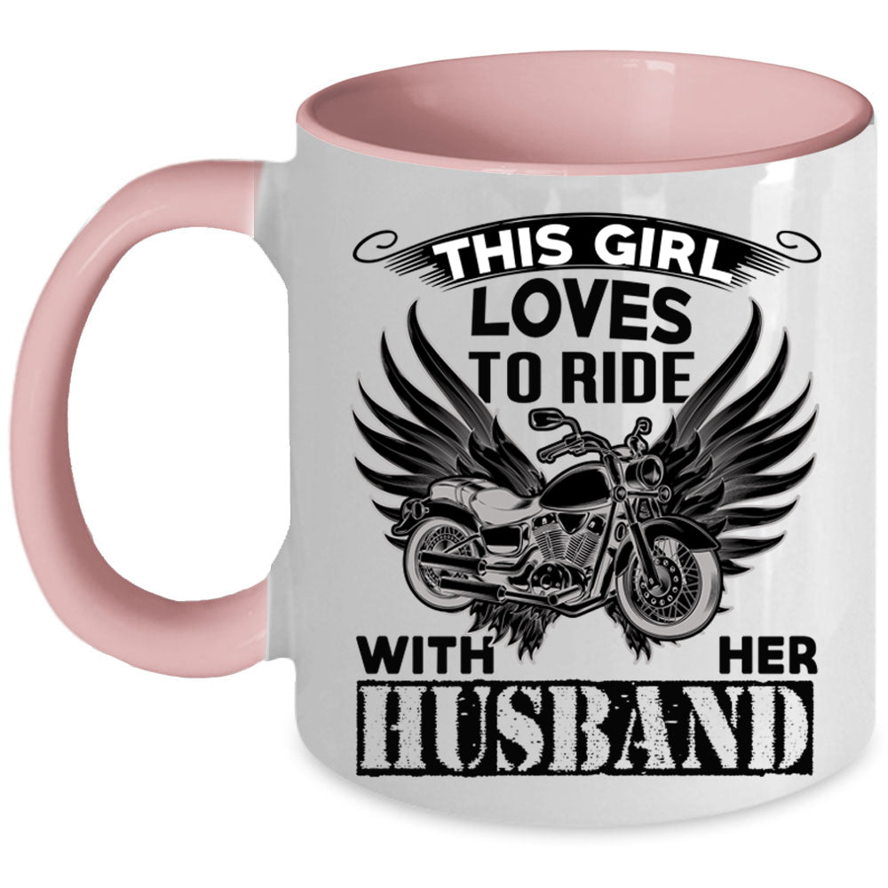 Cute Love Coffee Mug, This Girl Loves To Ride With Her Husband Accent Mug
