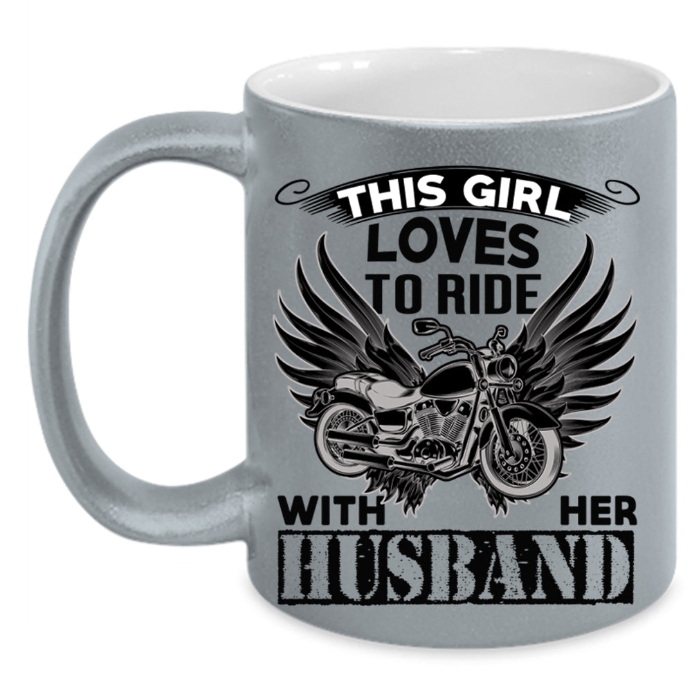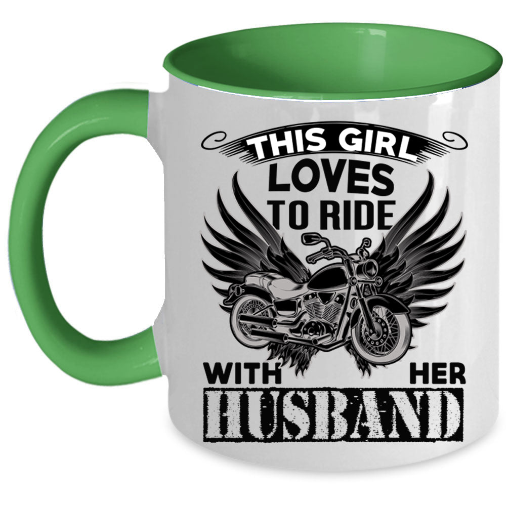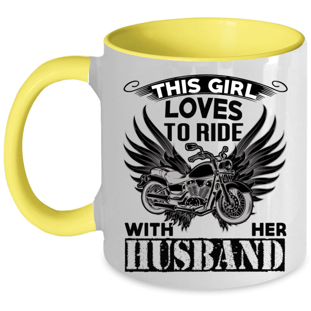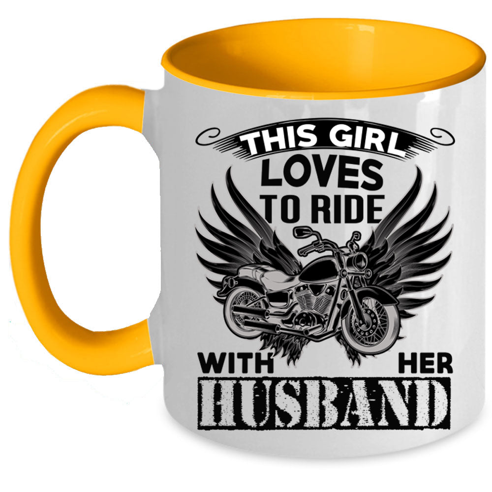 Cute Love Coffee Mug, This Girl Loves To Ride With Her Husband Accent Mug